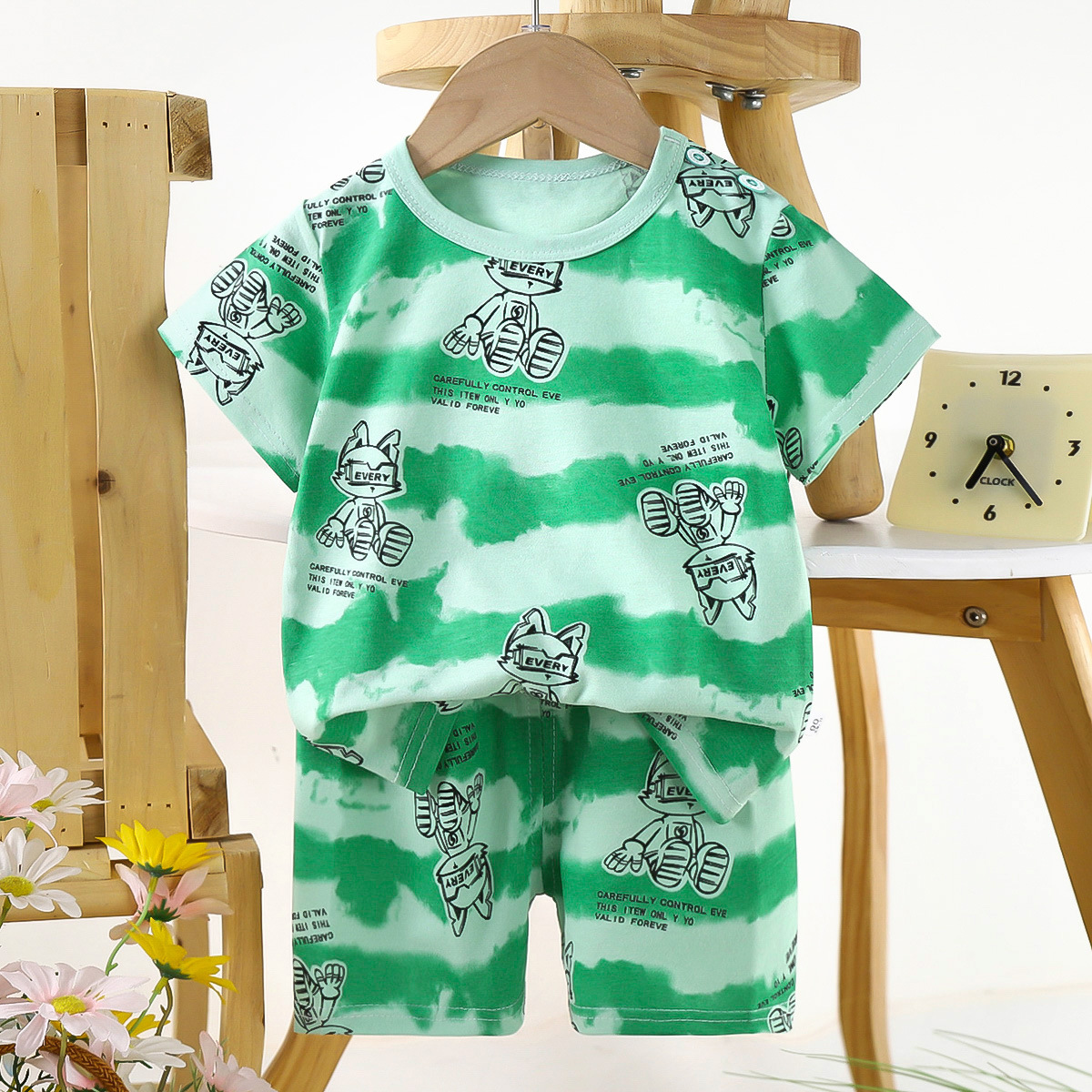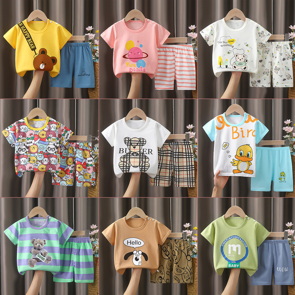 새 어린이 짧은 소매 면화 세트 소녀 여름 옷 소년 티셔츠 두 아기 옷 한국 아동복 도매스토어 가기