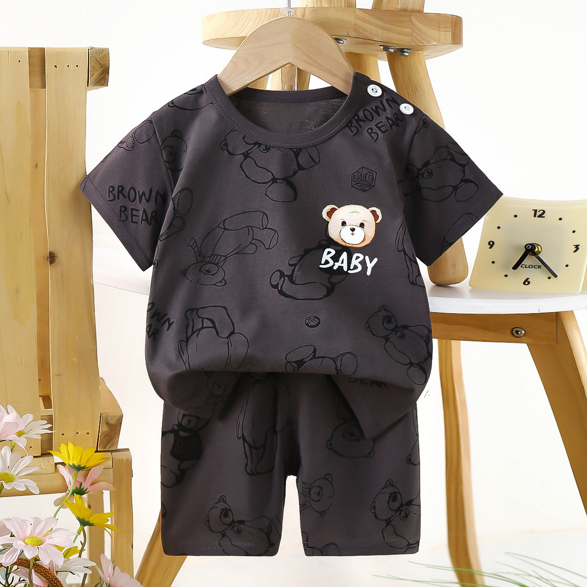 새 어린이 짧은 소매 면화 세트 소녀 여름 옷 소년 티셔츠 두 아기 옷 한국 아동복 도매