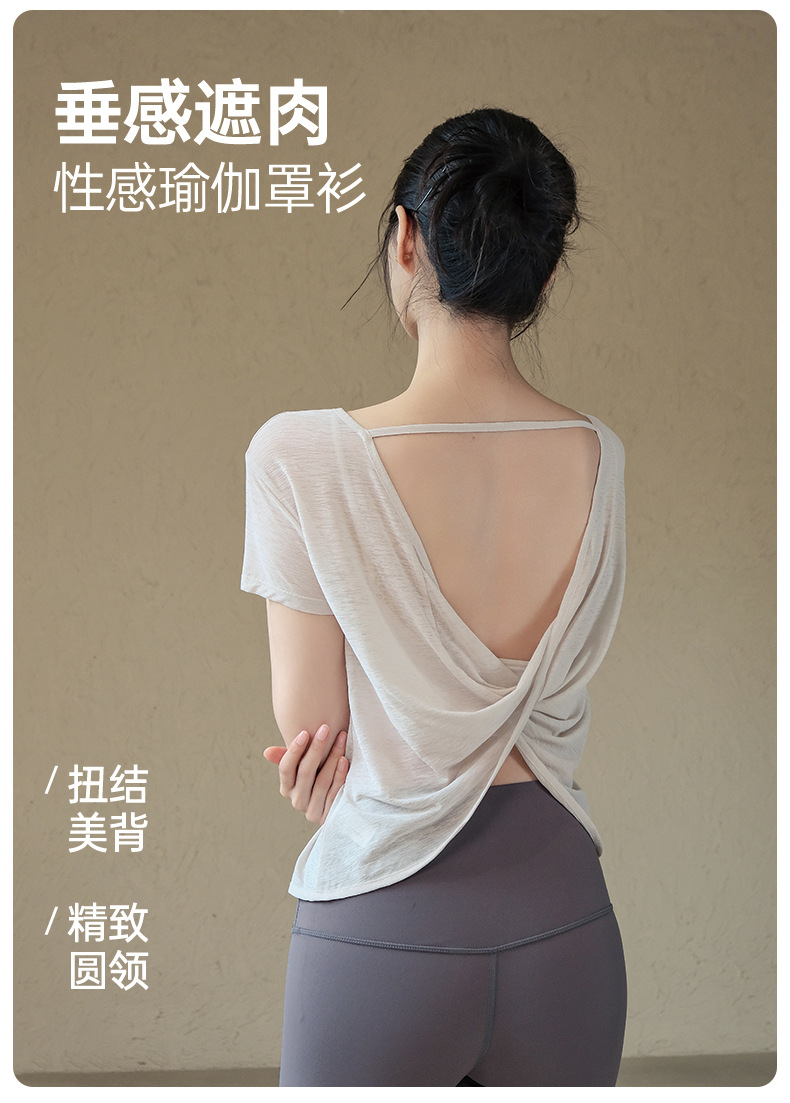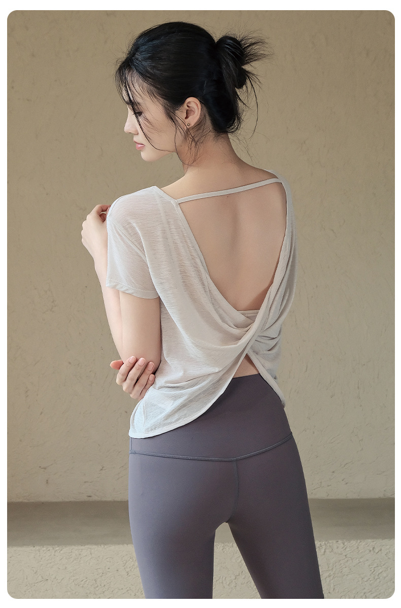 요가 의류 여성 2025 봄과 여름 새로운 요정 스타일 아름다운 백 스포츠 탑 반팔 티셔츠 러닝 트레이닝 피트니스