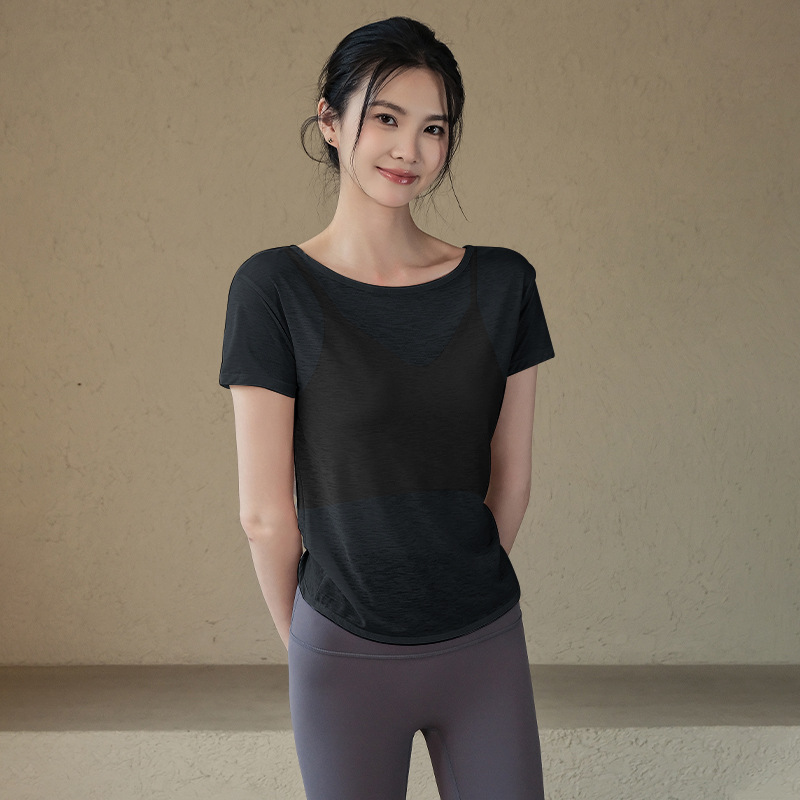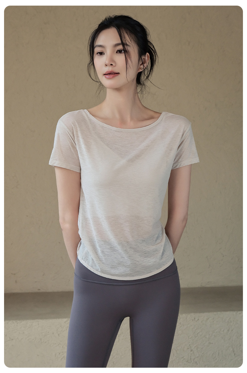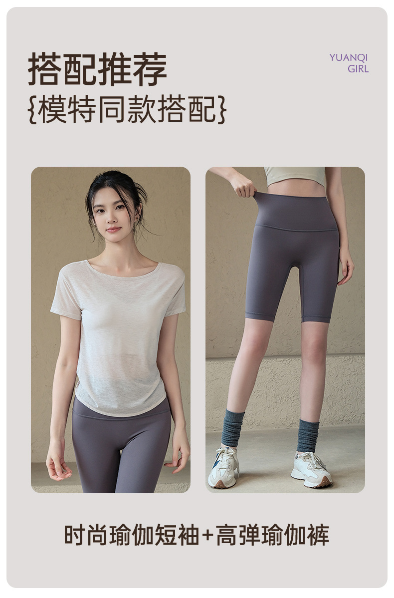 요가 의류 여성 2025 봄과 여름 새로운 요정 스타일 아름다운 백 스포츠 탑 반팔 티셔츠 러닝 트레이닝 피트니스스토어 가기