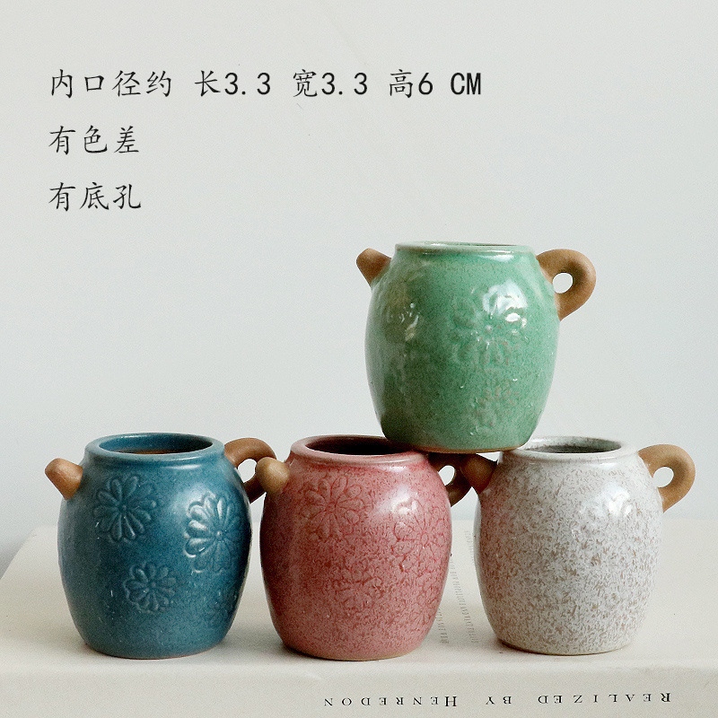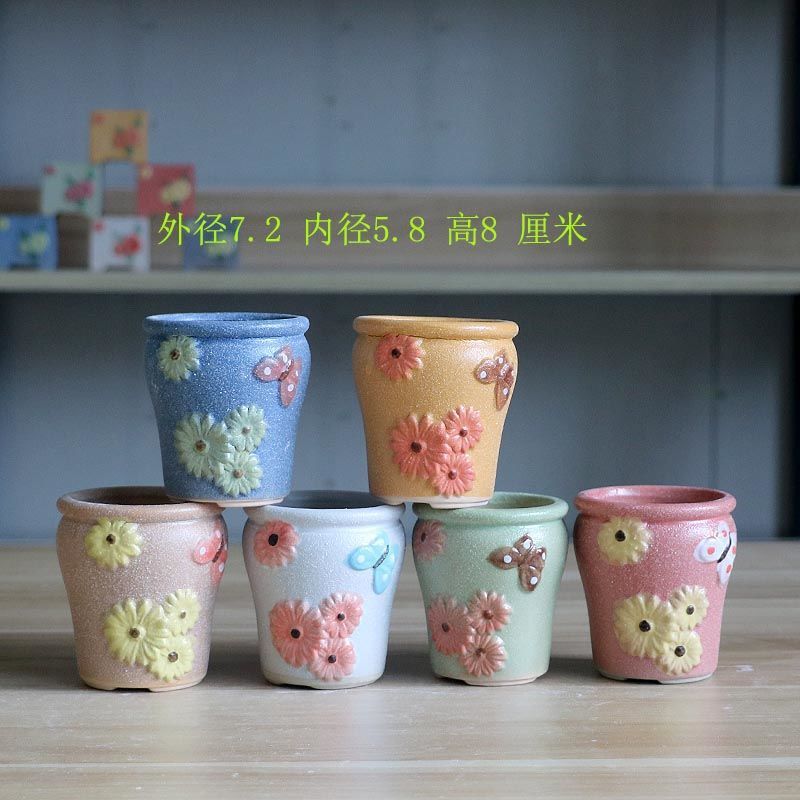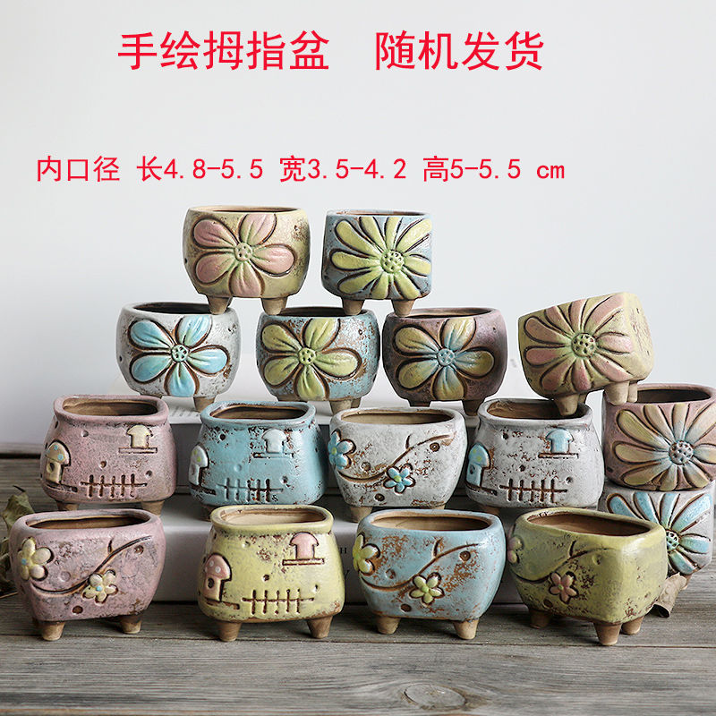 다육 꽃 냄비 통기성 작은 우유 냄비 엄지 냄비 거친 도자기 세라믹 목회 일반 불타는 보라색 모래 간단한 작은 꽃 냄비 무료 배송