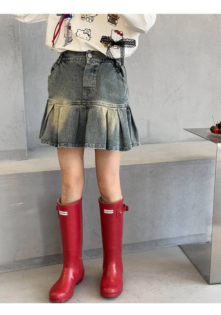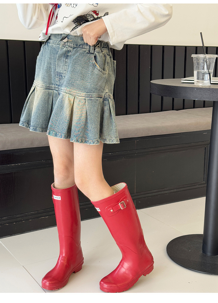 여자 치마 여름 데님 치마 어린이 치마 2025 새로운 스타일 서양식 소녀 A 라인 스커트 주름 치마