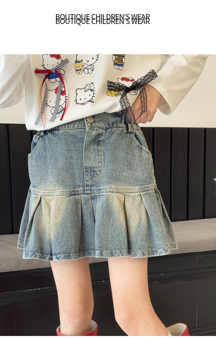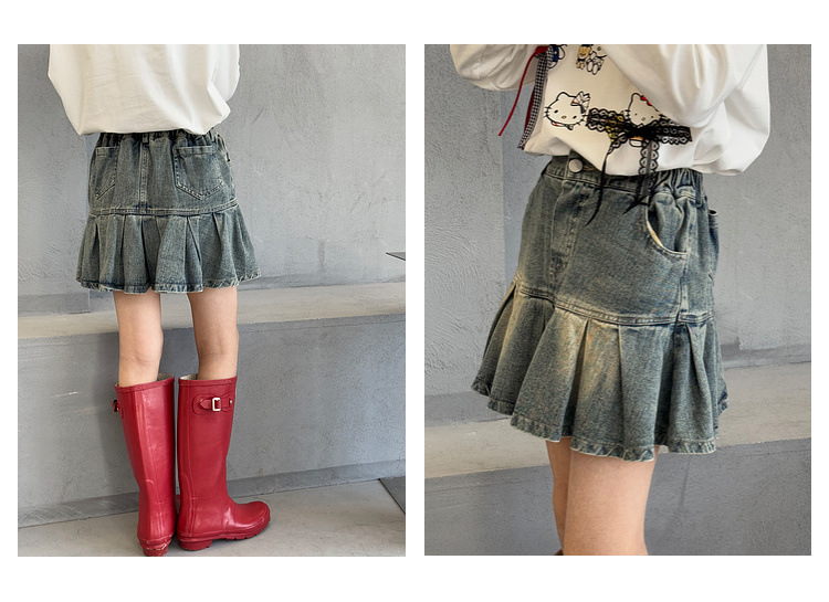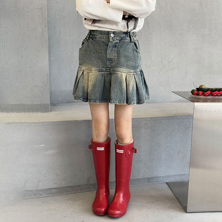 여자 치마 여름 데님 치마 어린이 치마 2025 새로운 스타일 서양식 소녀 A 라인 스커트 주름 치마스토어 가기