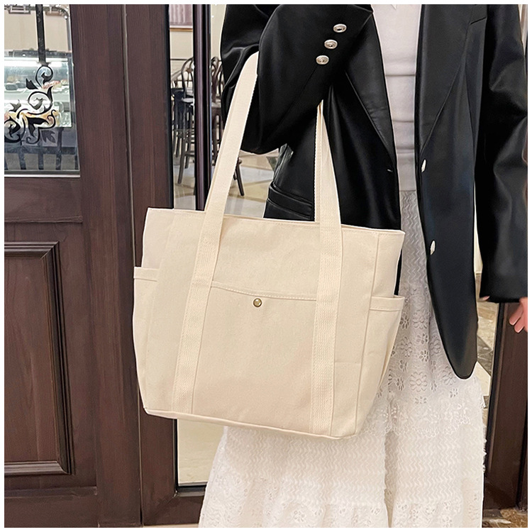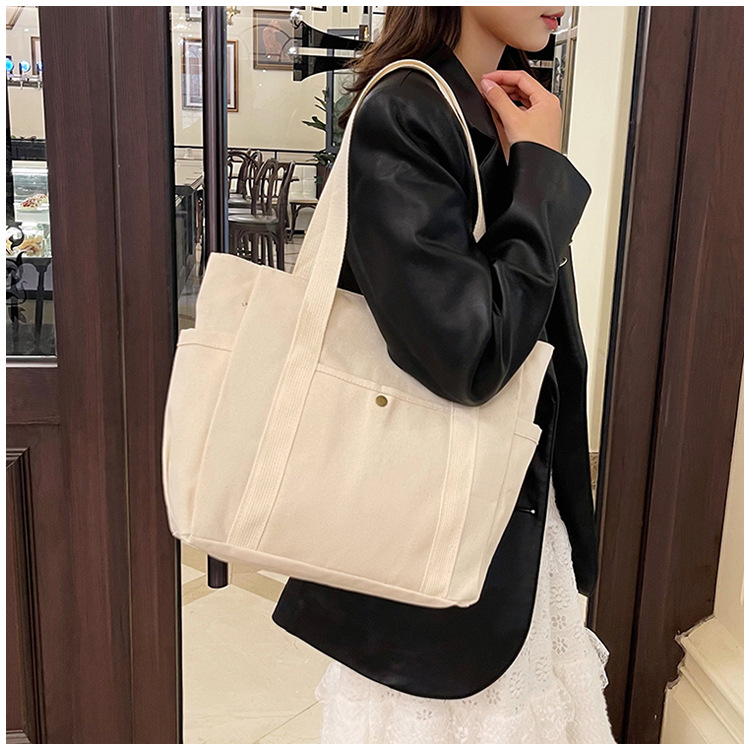 작업 및 외출 용 대용량 토트 캔버스 가방 고 가치 통근 올 매치 아트 학생 도서 원 숄더 천 가방