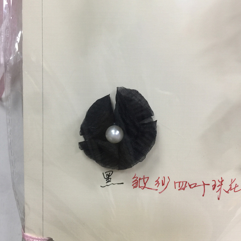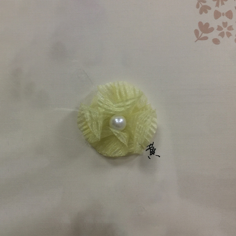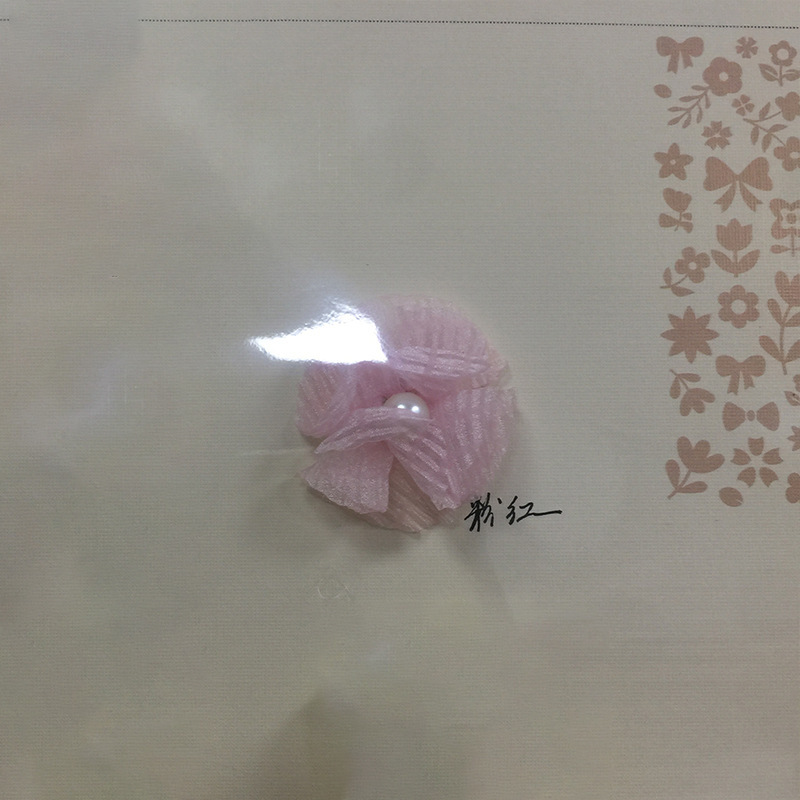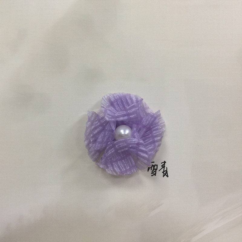 직물 수제 꽃 DIY 액세서리 진주 격자 무늬 거즈 꽃 액세서리 장난감 헤어 액세서리 주름 원사 4 잎 구슬 꽃