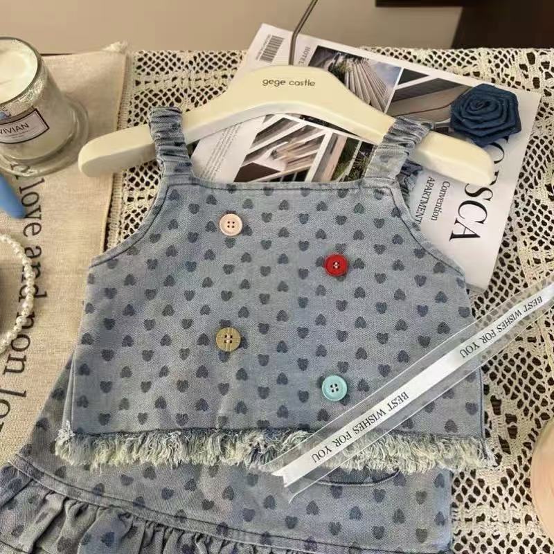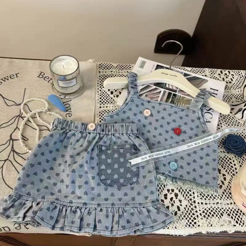 여자 데님 세트 2025 여름 새로운 카미솔 조끼 치마 세트 아기 캐주얼 투피스 유행 세트스토어 가기