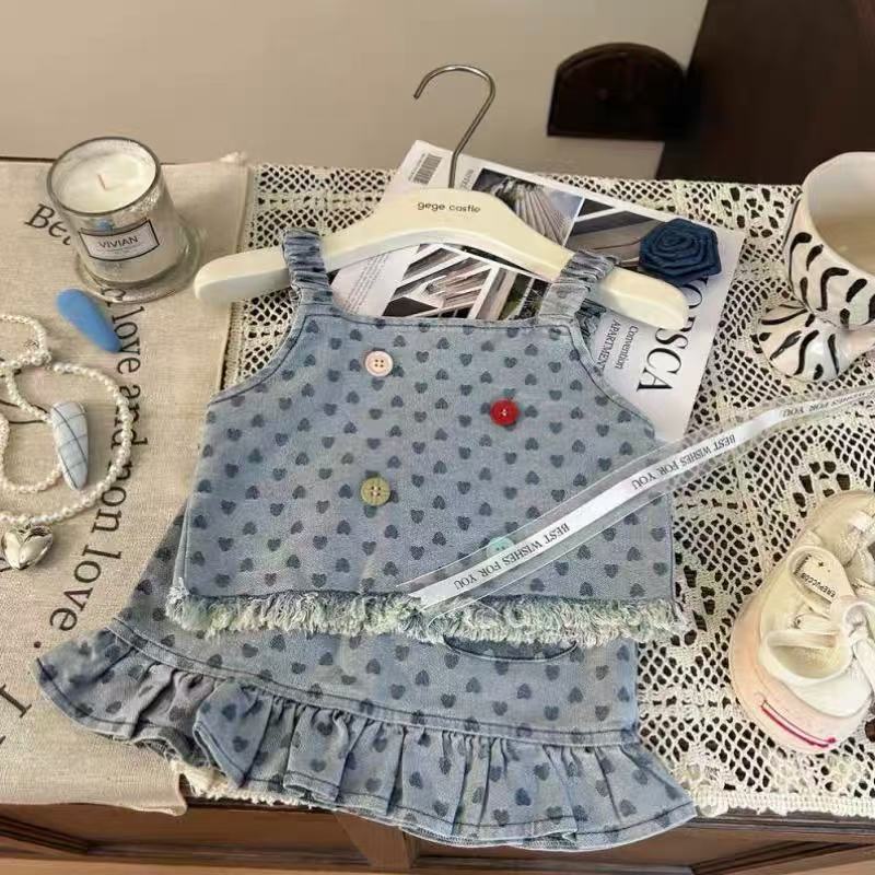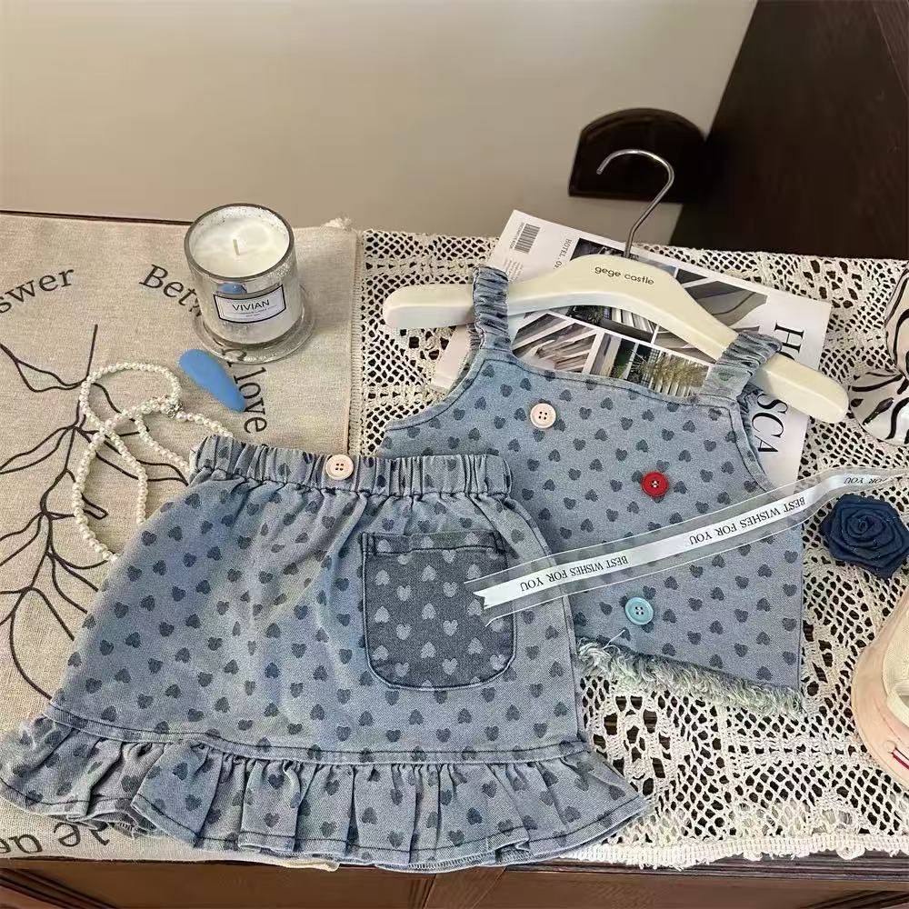 여자 데님 세트 2025 여름 새로운 카미솔 조끼 치마 세트 아기 캐주얼 투피스 유행 세트