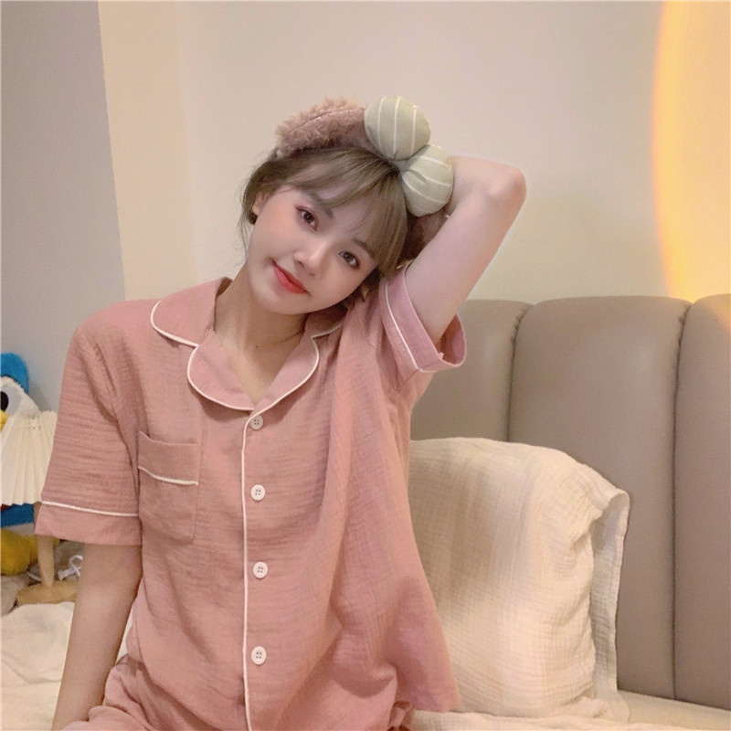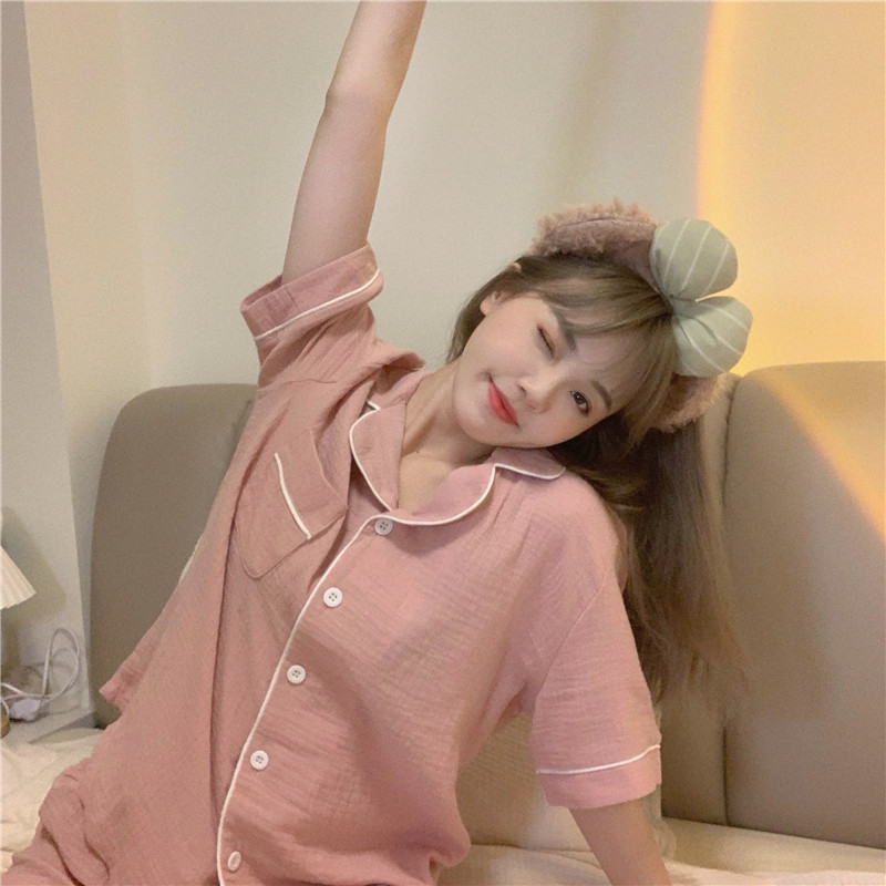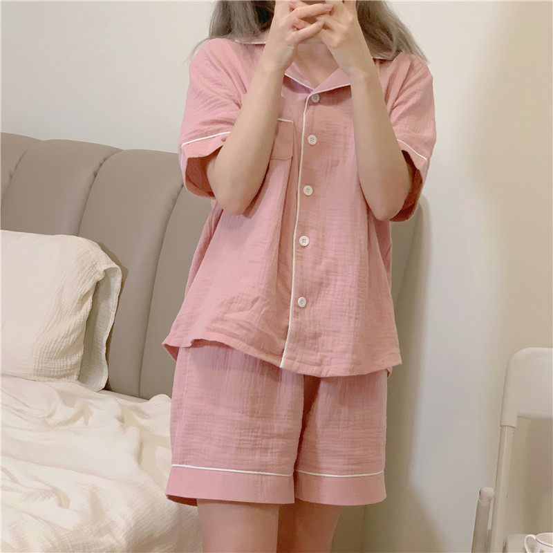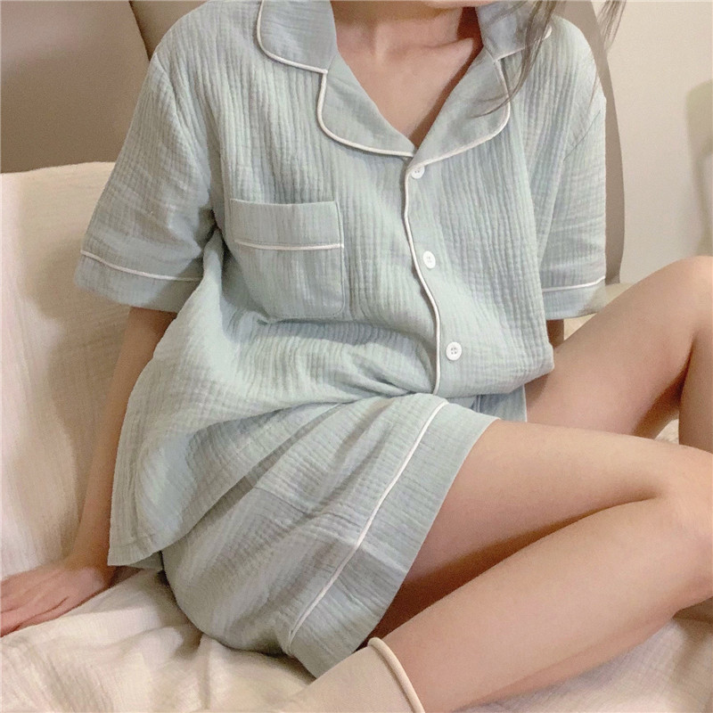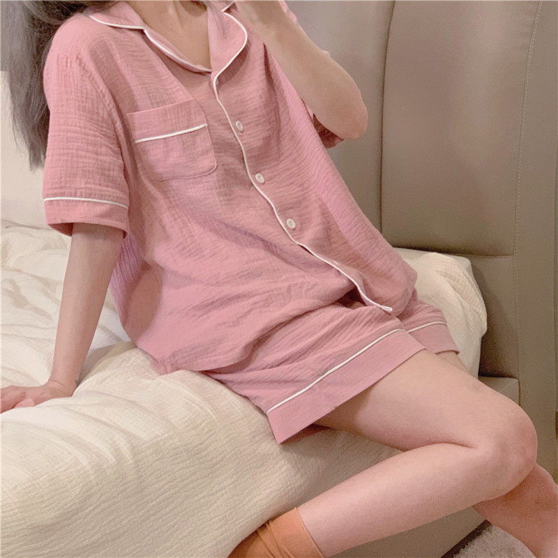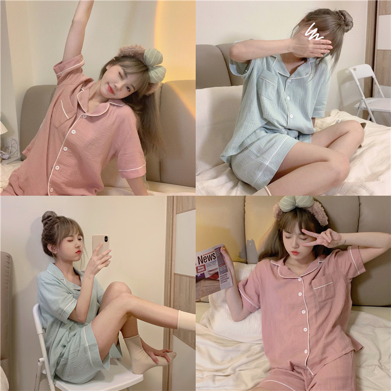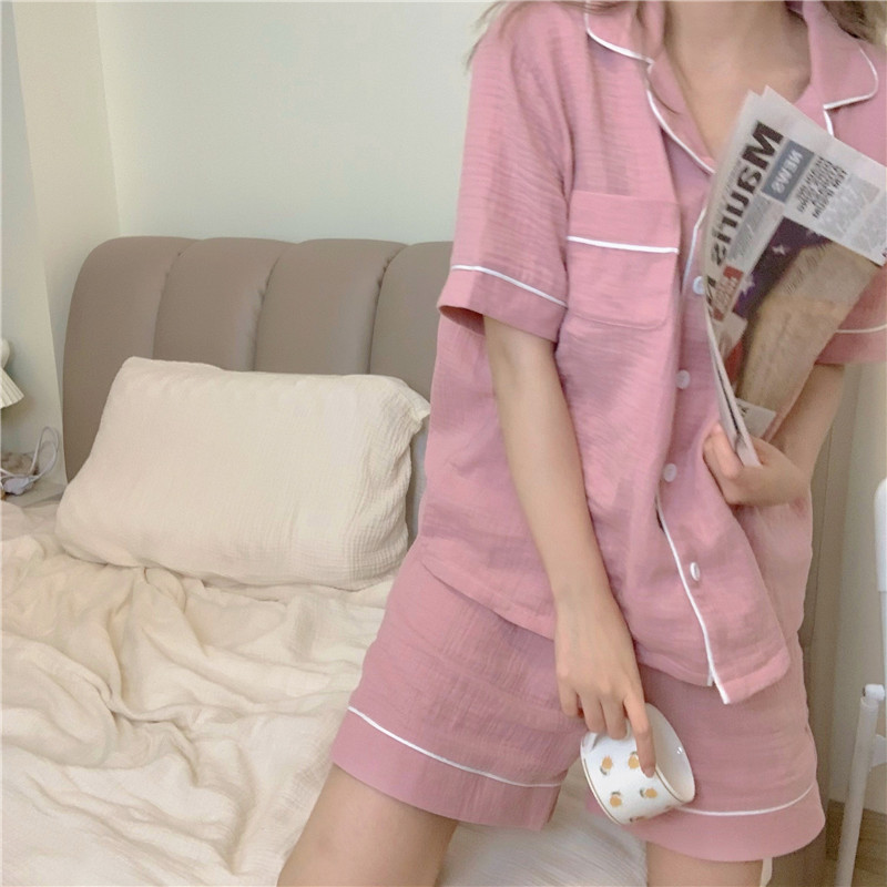 새로운 2025 간단한 잠옷 여성의 여름 새로운 간단한 느슨한 짧은 소매 반바지 달콤한 얇은 홈 의류 세트스토어 가기
