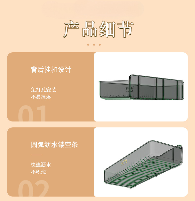• ?[새 스타일] 벽걸이형 직사각형 수납선반/후크 포함/배수구용 중공형★★