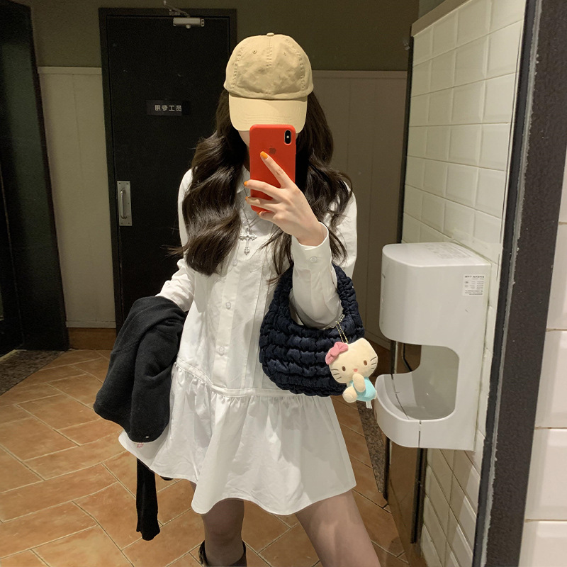 봄 우아한 학교 달콤한 여동생 흰색 긴팔 원피스 여성의 2025 폭발 새로운 다이파 뉴스토어 가기