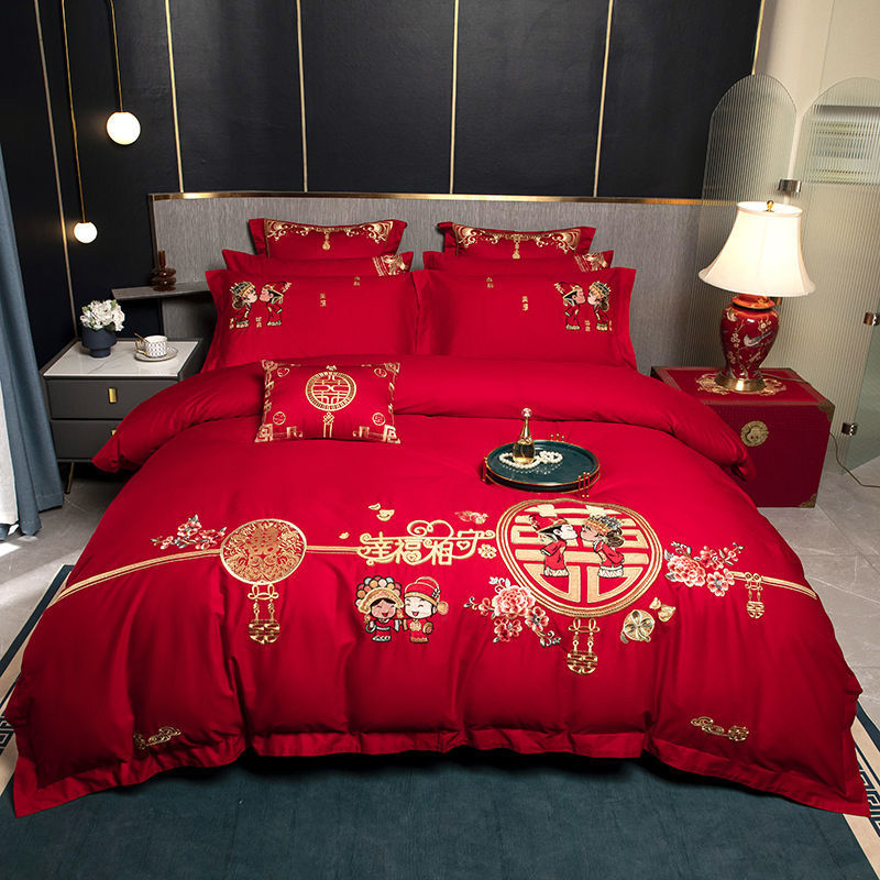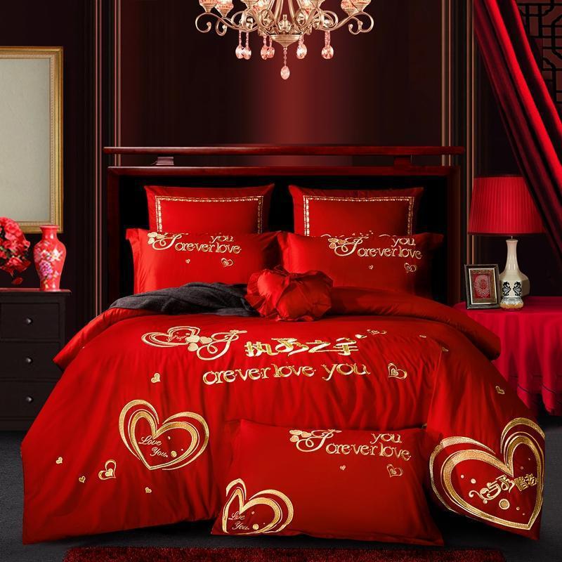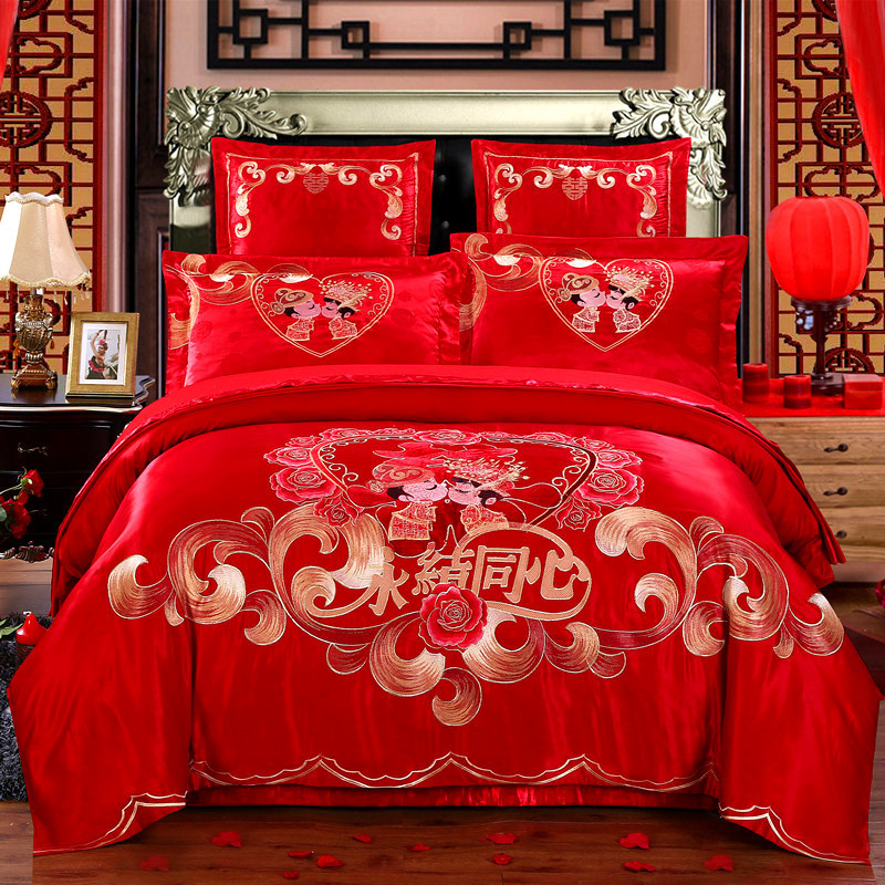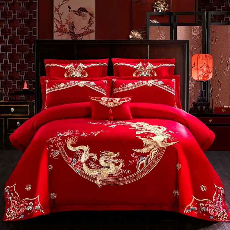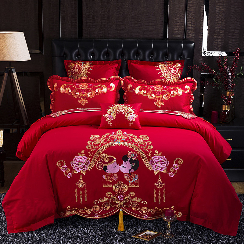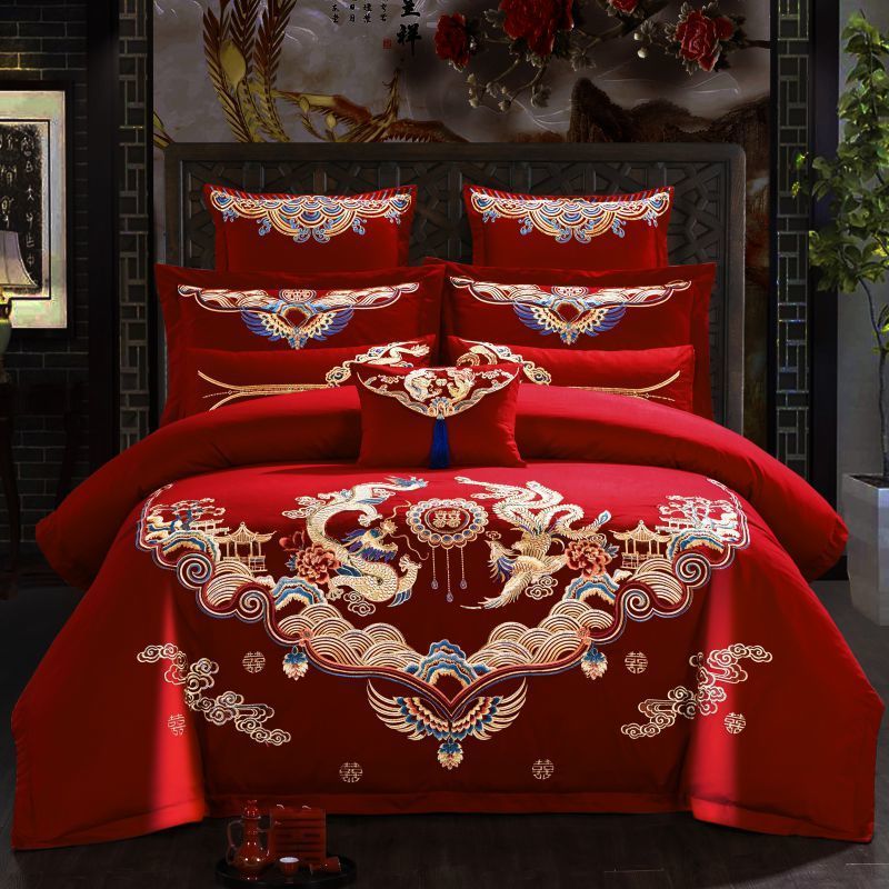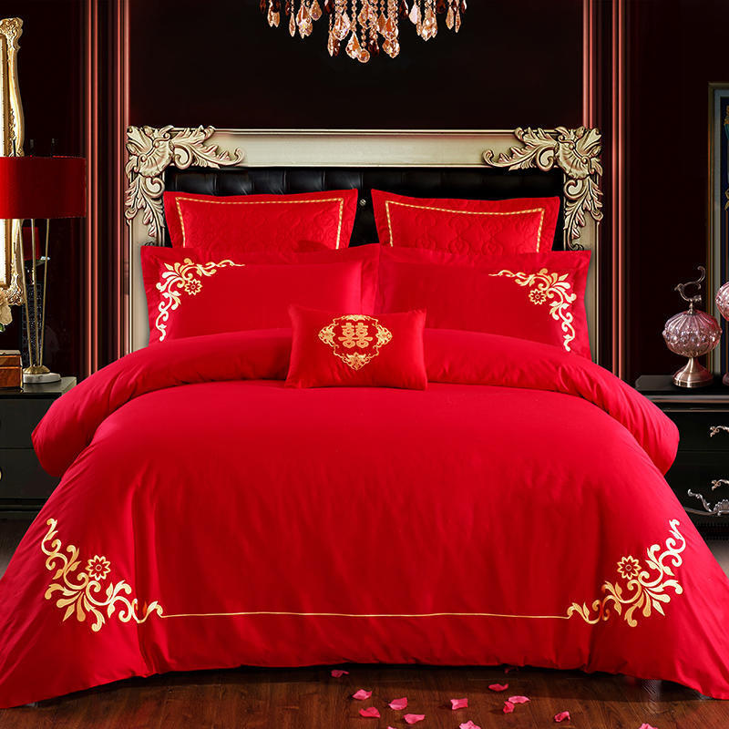 공장 도매 결혼식 100 면 자수 4 조각 세트 큰 빨간 결혼식 결혼식 결혼식 결혼식 방 축제 침구 키트스토어 가기