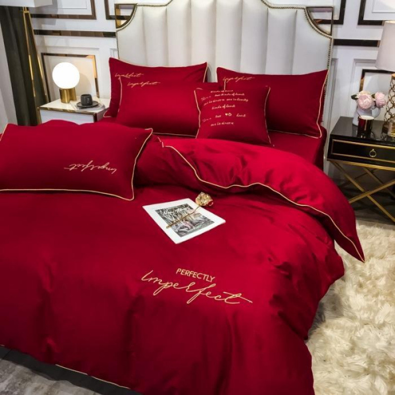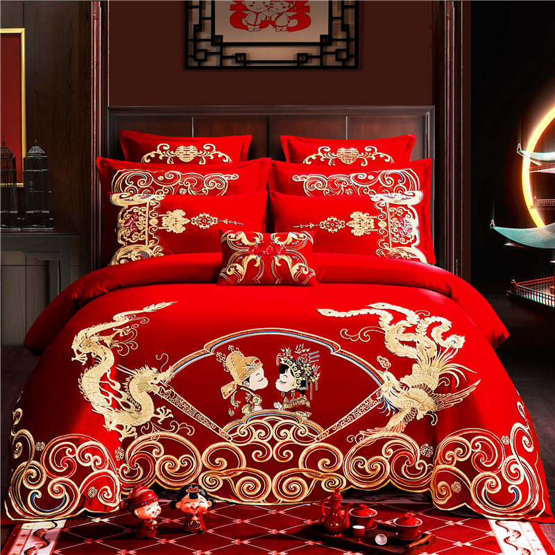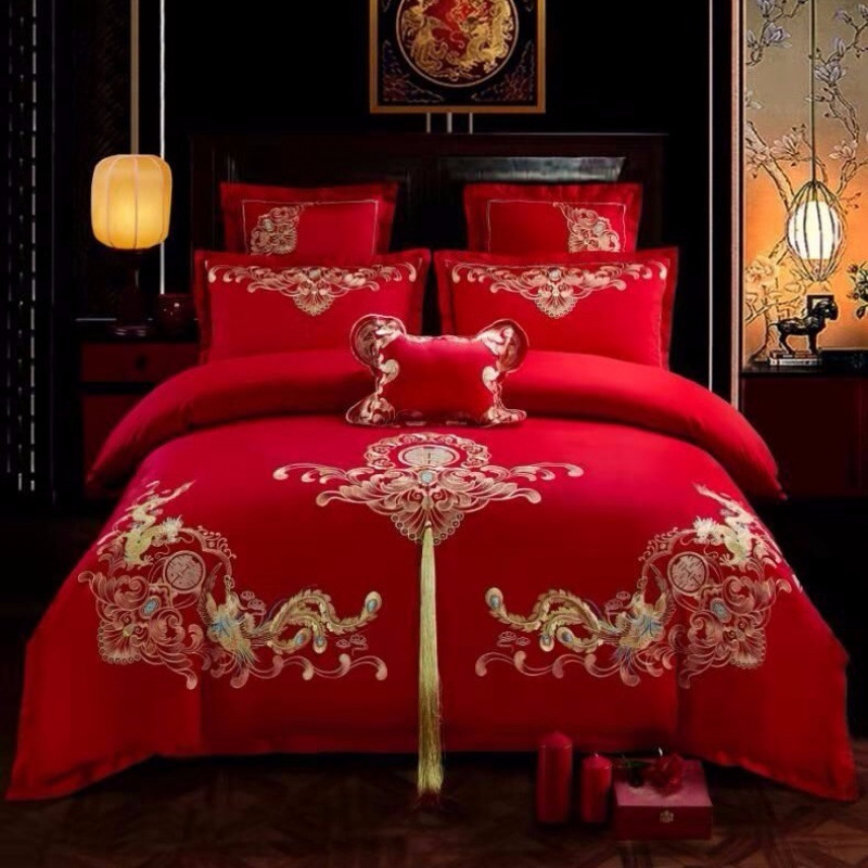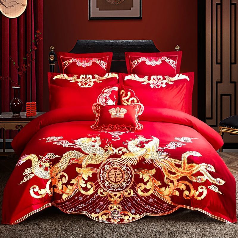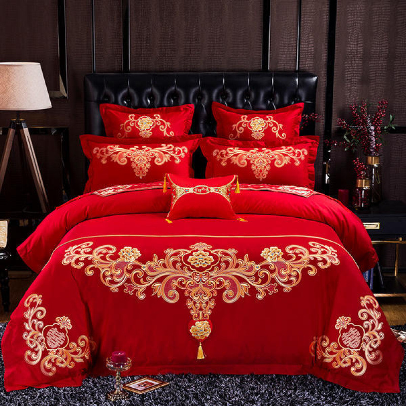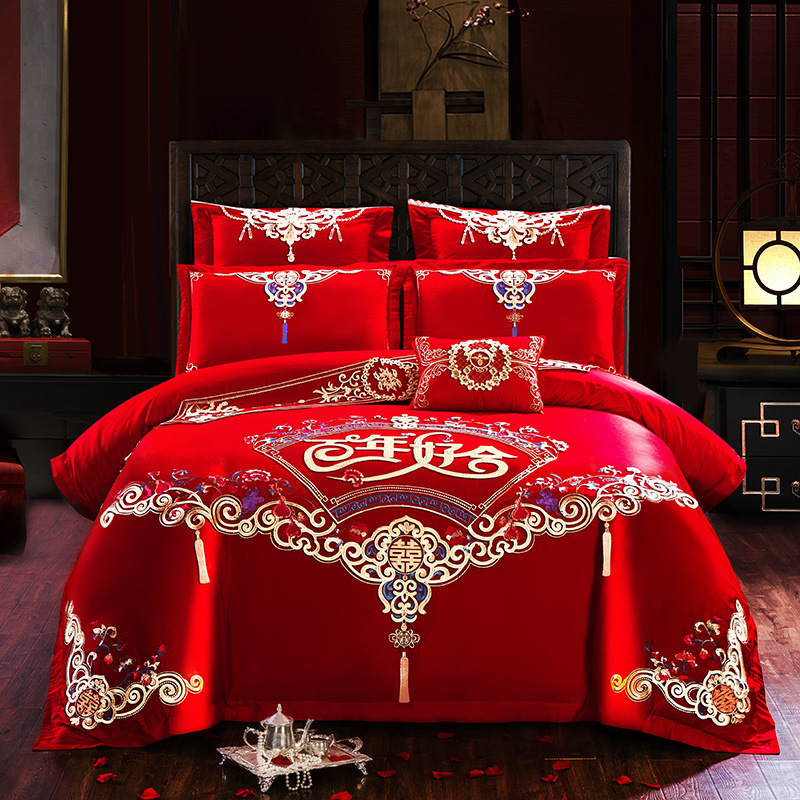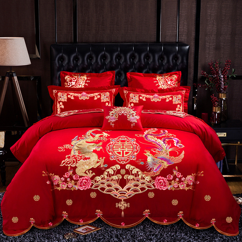 공장 도매 결혼식 100 면 자수 4 조각 세트 큰 빨간 결혼식 결혼식 결혼식 결혼식 방 축제 침구 키트스토어 가기