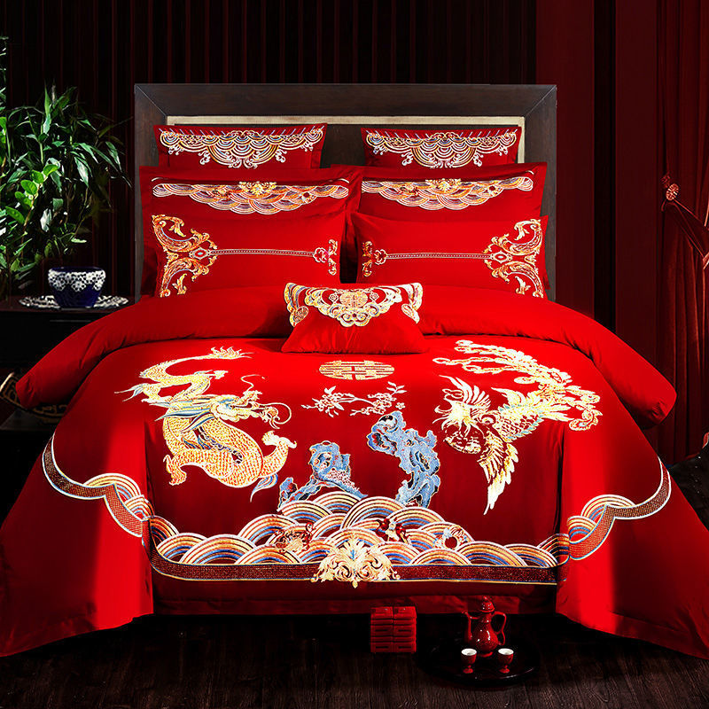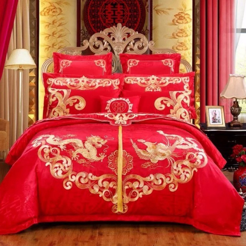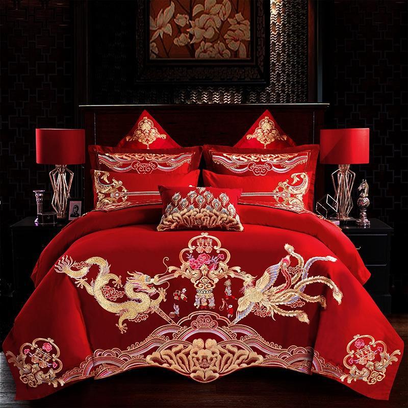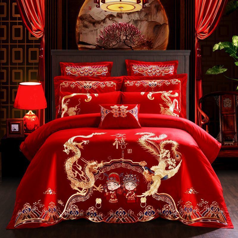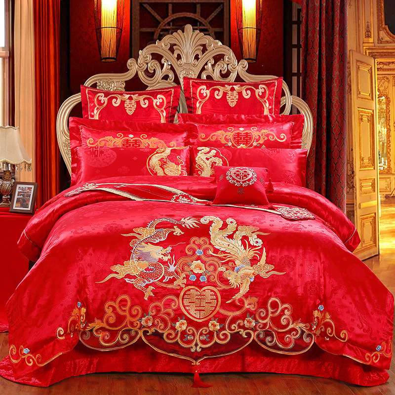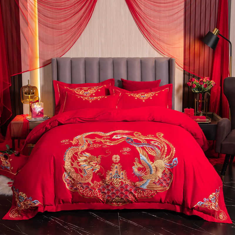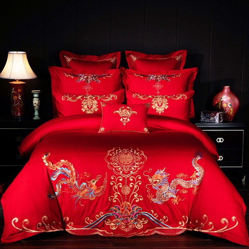 공장 도매 결혼식 100 면 자수 4 조각 세트 큰 빨간 결혼식 결혼식 결혼식 결혼식 방 축제 침구 키트스토어 가기