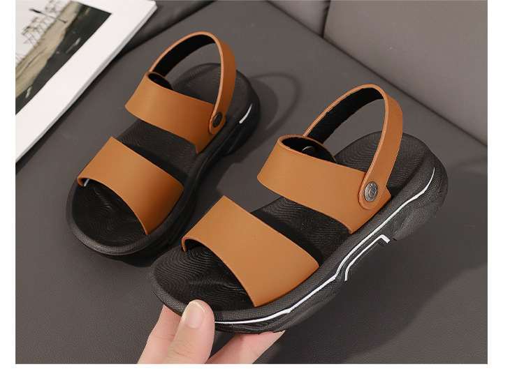 소년 샌들 2025 새로운 두꺼운 밑창 가죽 미끄럼 방지 해변 여름 착용 캐주얼 어린이 양복 샌들 걸스스토어 가기
