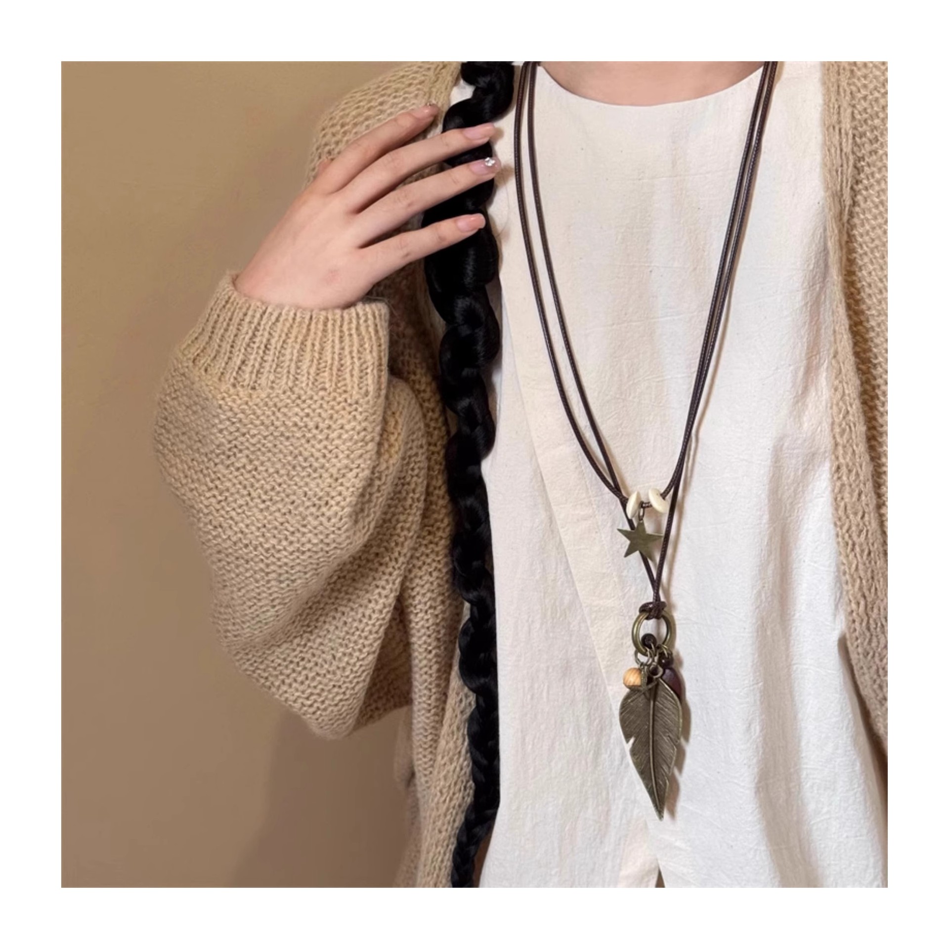 새로운 중국 선 긴 스웨터 목걸이 여성 더블 레이어 복고풍 민족 스타일 구슬 목걸이 틈새 깃털 쇄골 체인