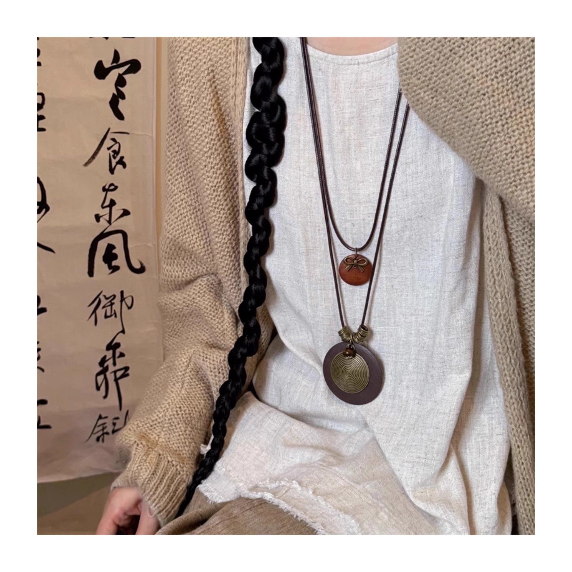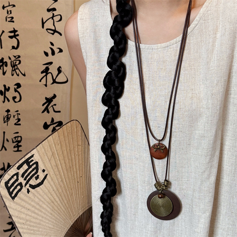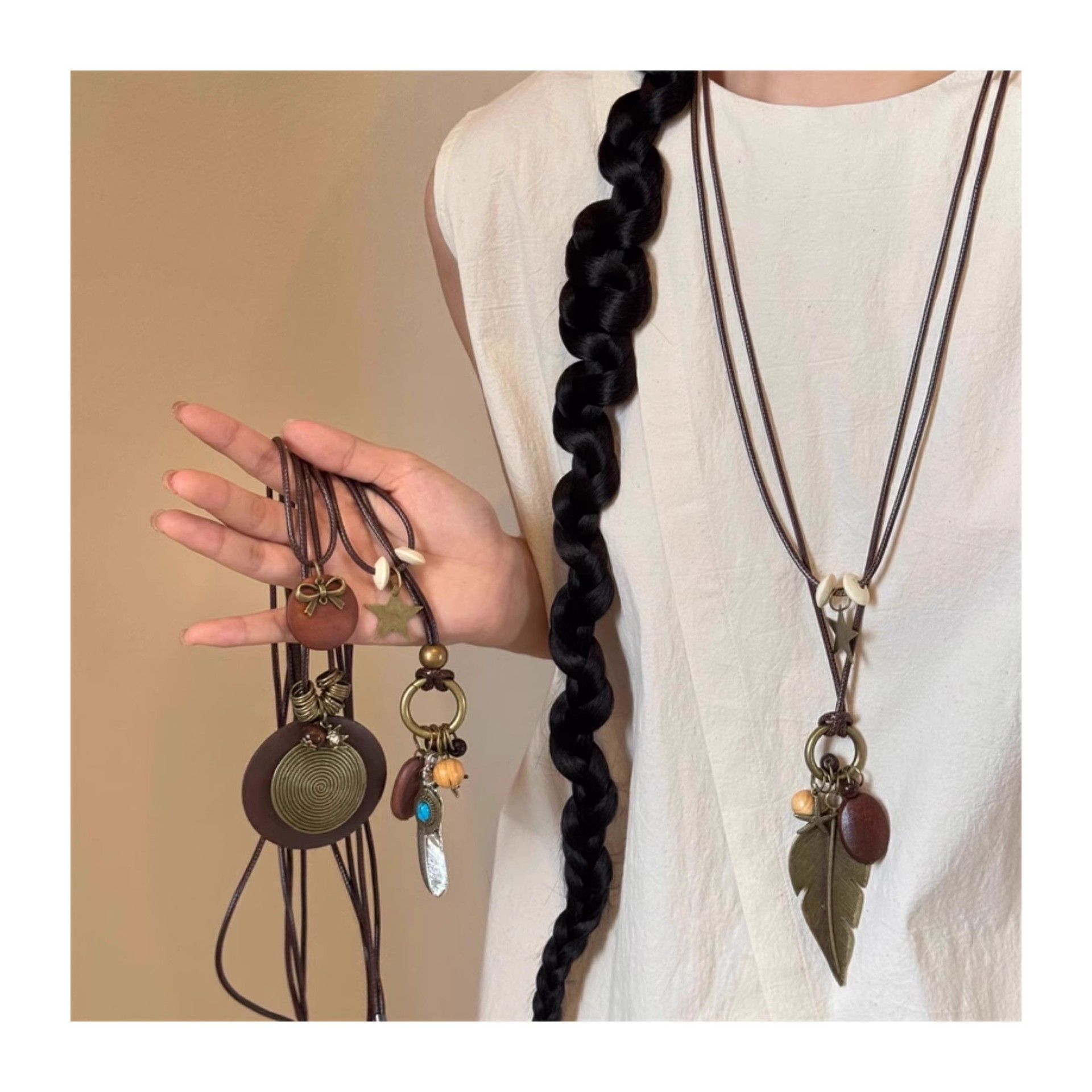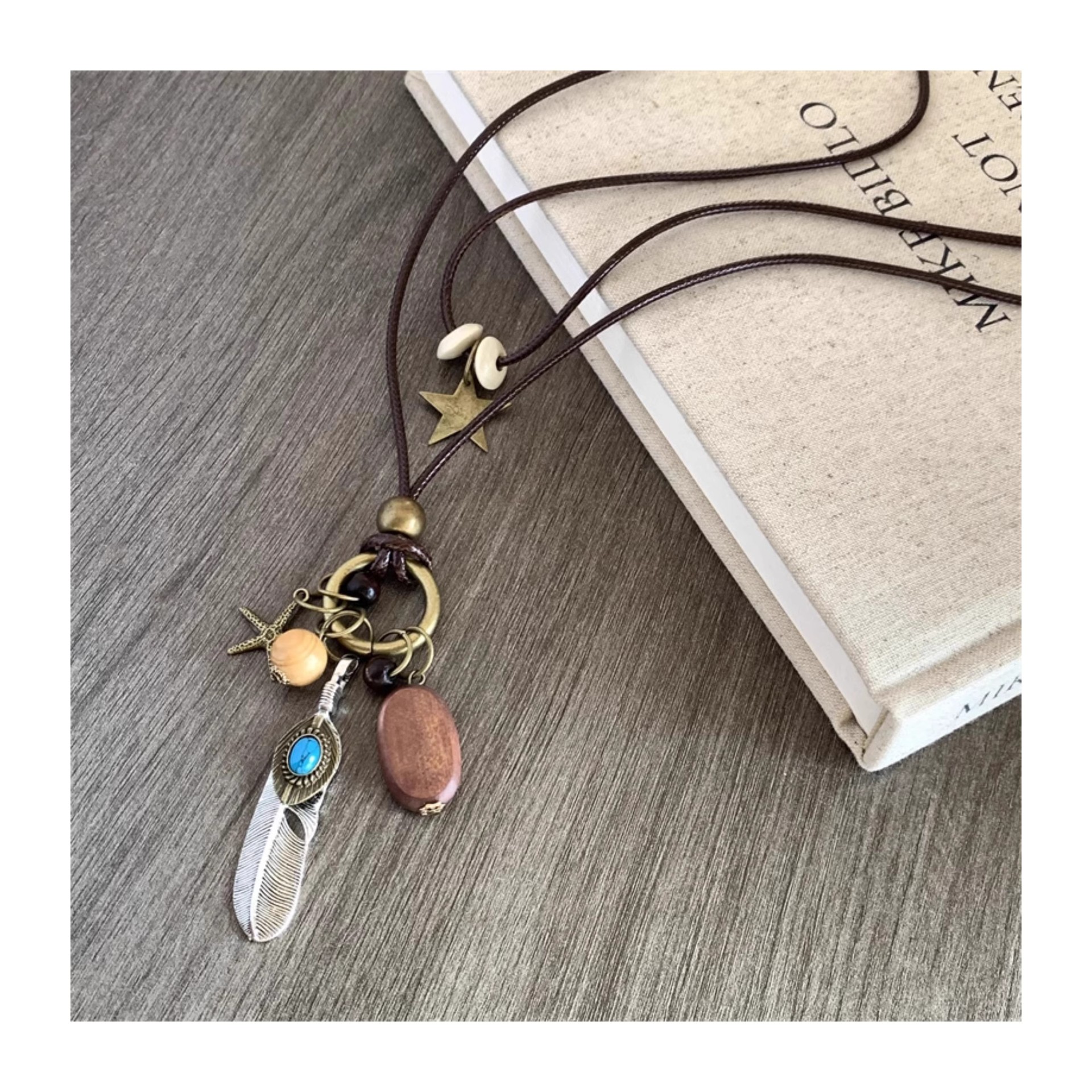 새로운 중국 선 긴 스웨터 목걸이 여성 더블 레이어 복고풍 민족 스타일 구슬 목걸이 틈새 깃털 쇄골 체인스토어 가기