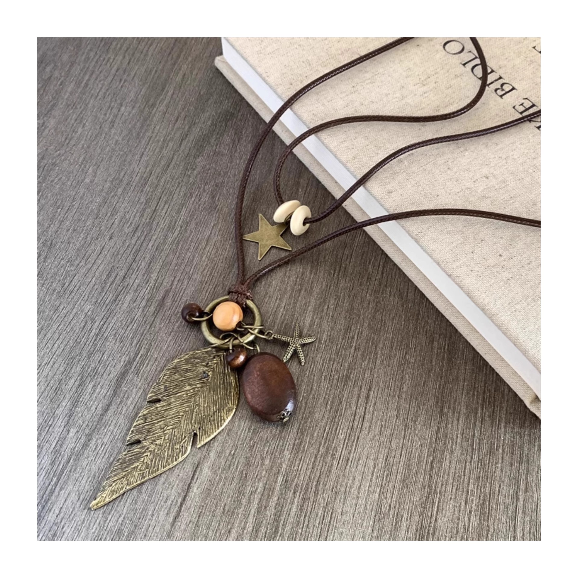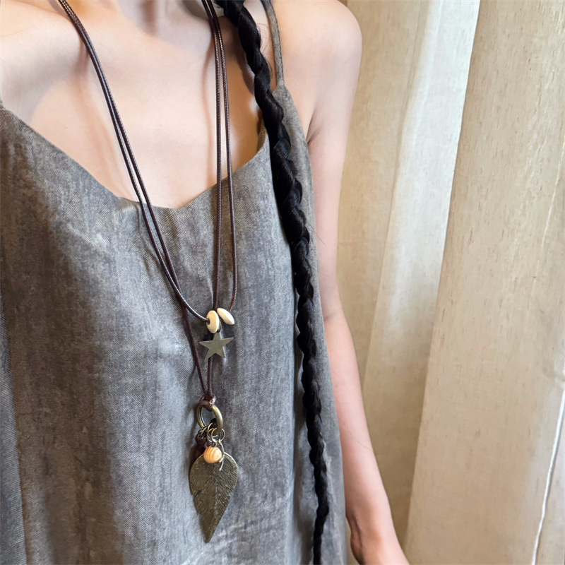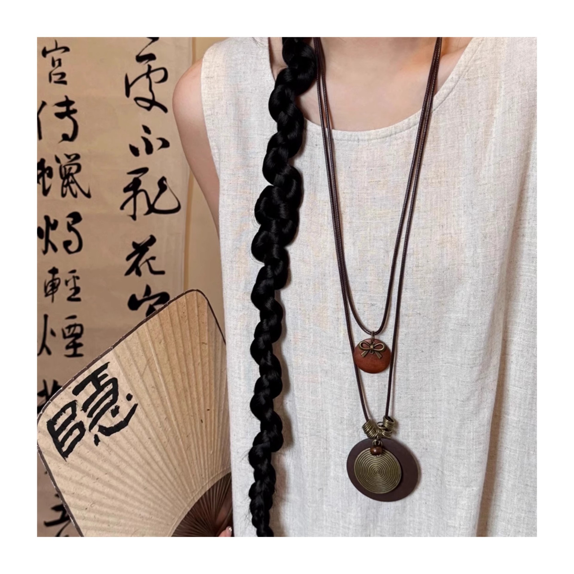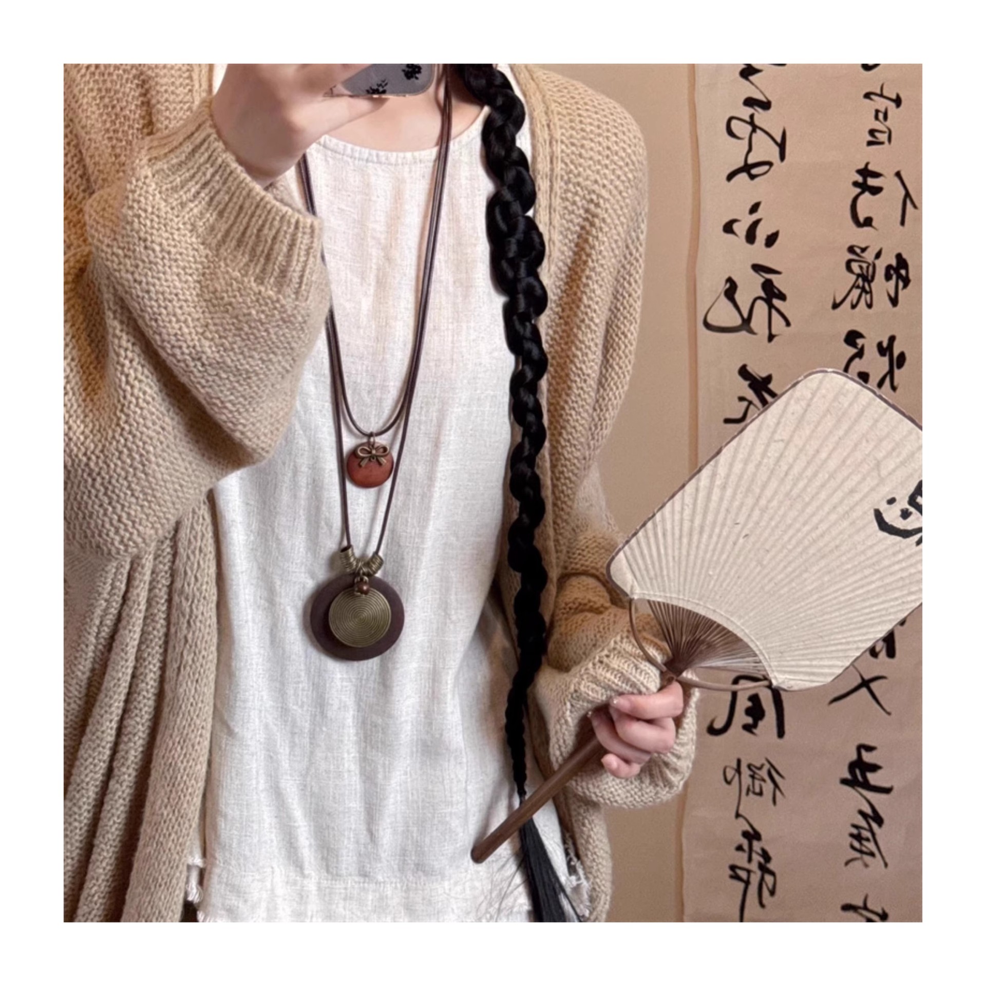 새로운 중국 선 긴 스웨터 목걸이 여성 더블 레이어 복고풍 민족 스타일 구슬 목걸이 틈새 깃털 쇄골 체인스토어 가기