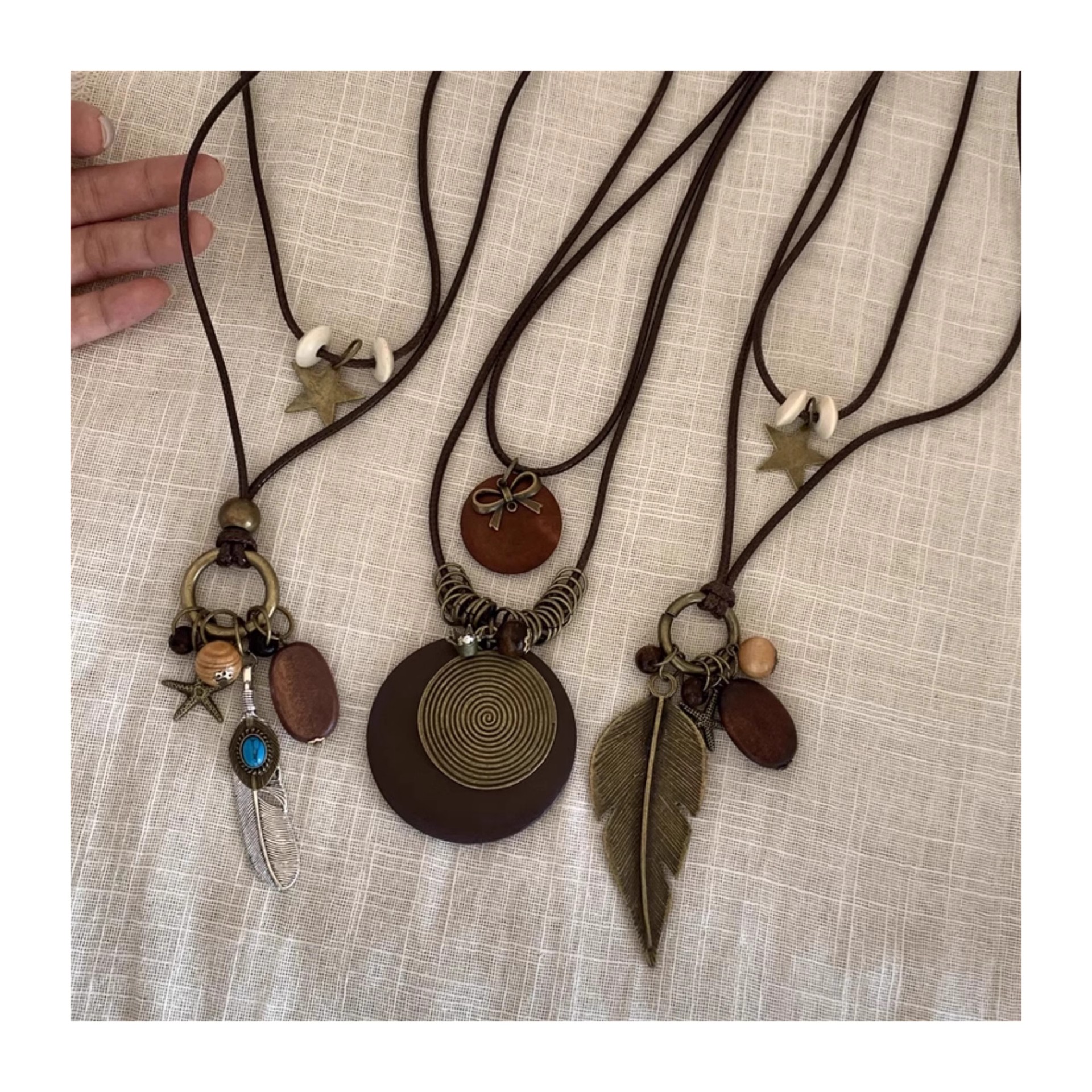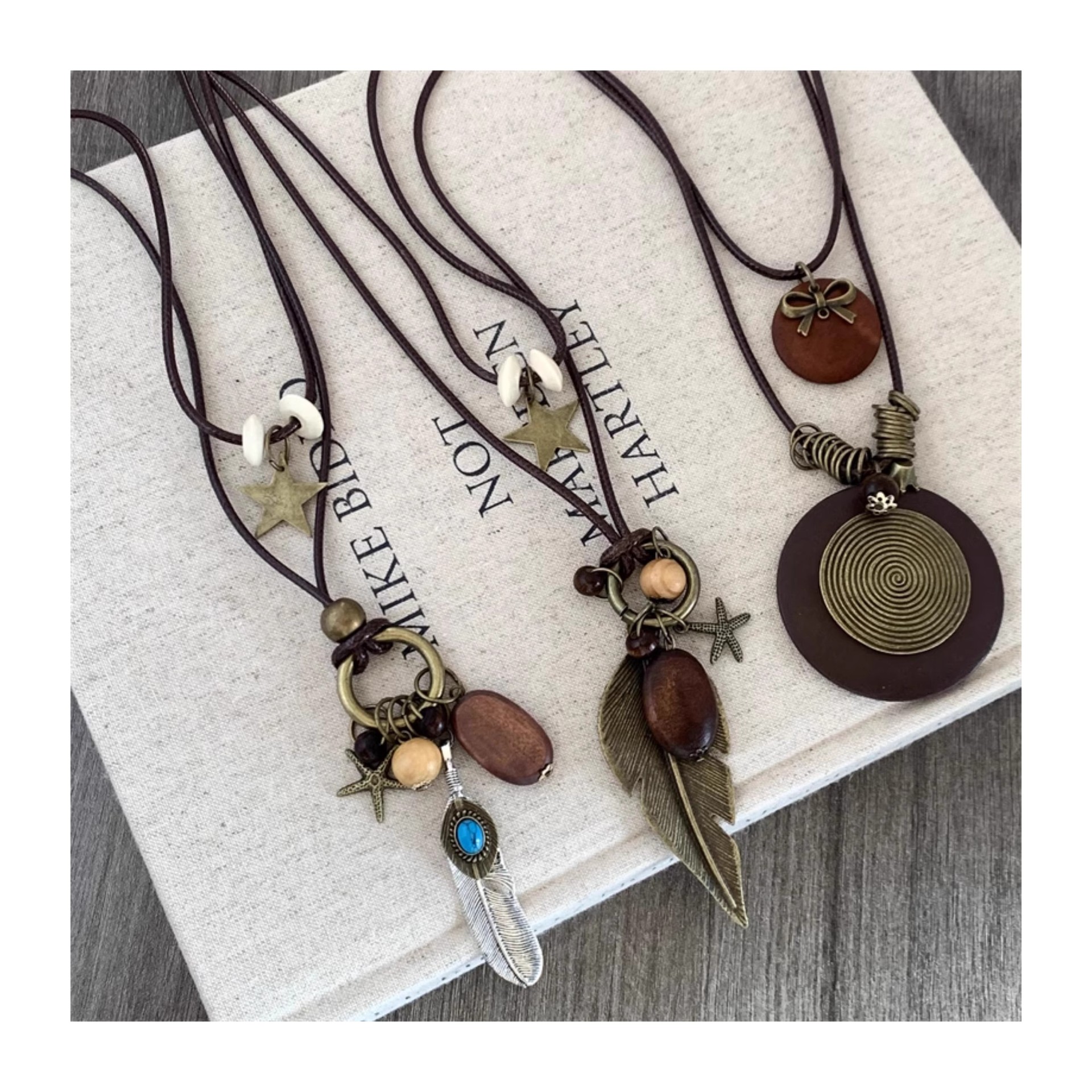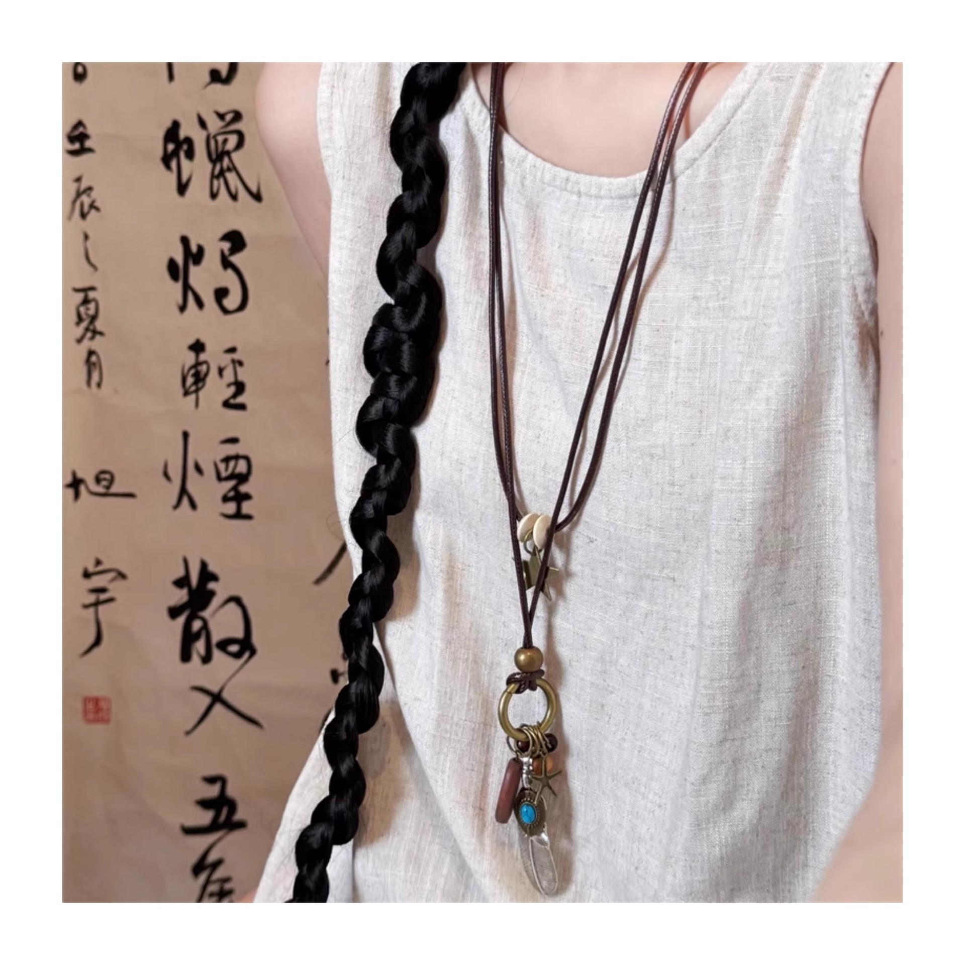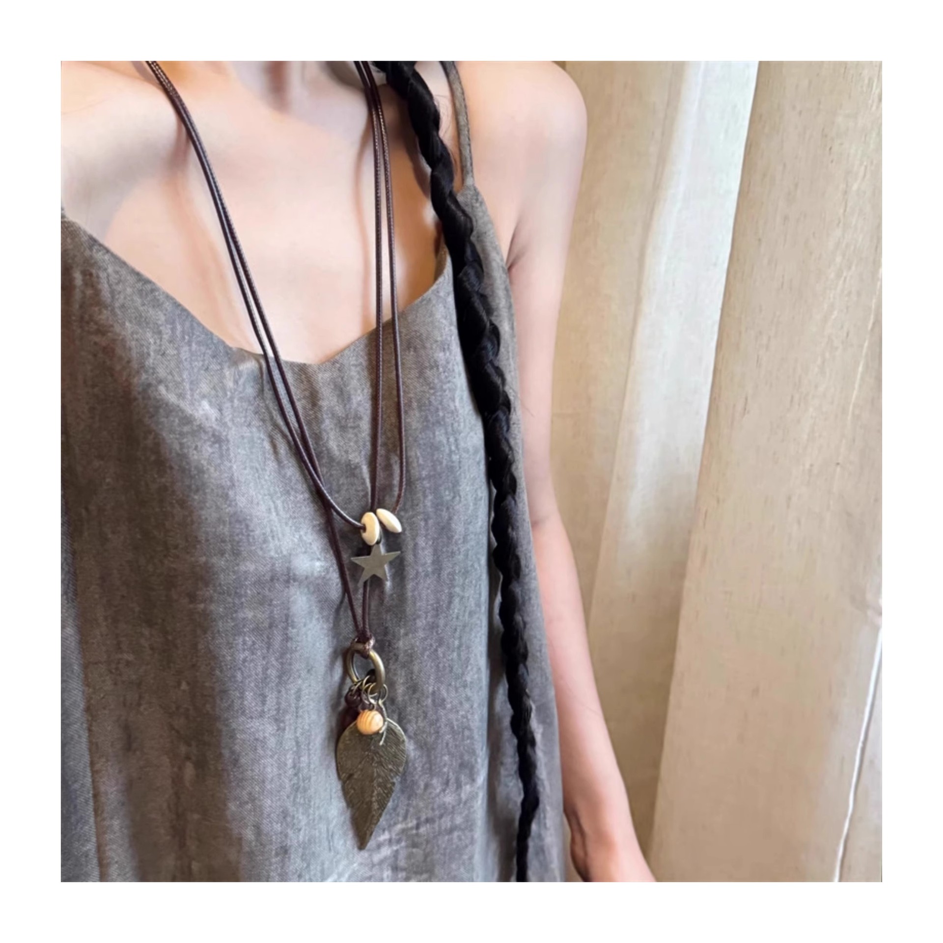 새로운 중국 선 긴 스웨터 목걸이 여성 더블 레이어 복고풍 민족 스타일 구슬 목걸이 틈새 깃털 쇄골 체인스토어 가기