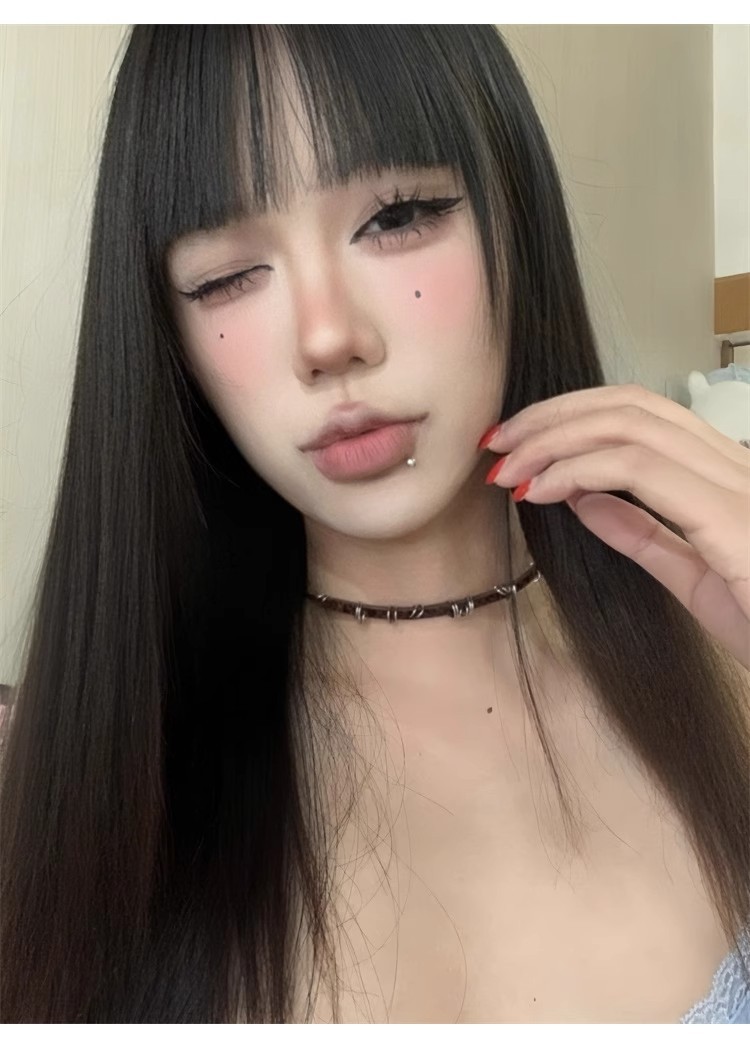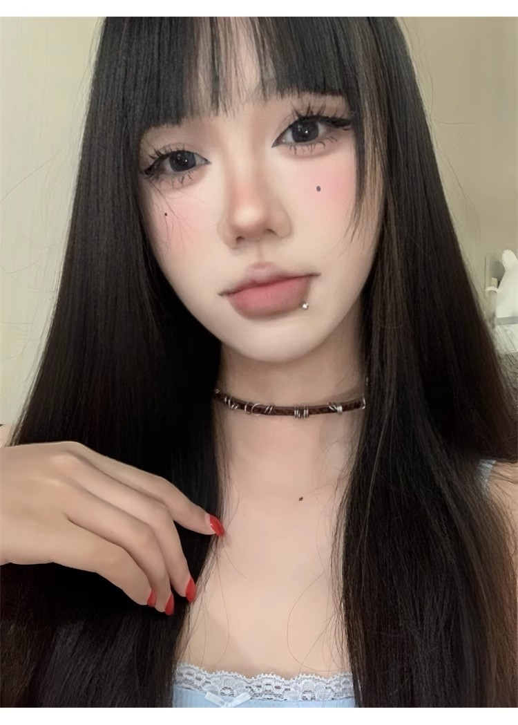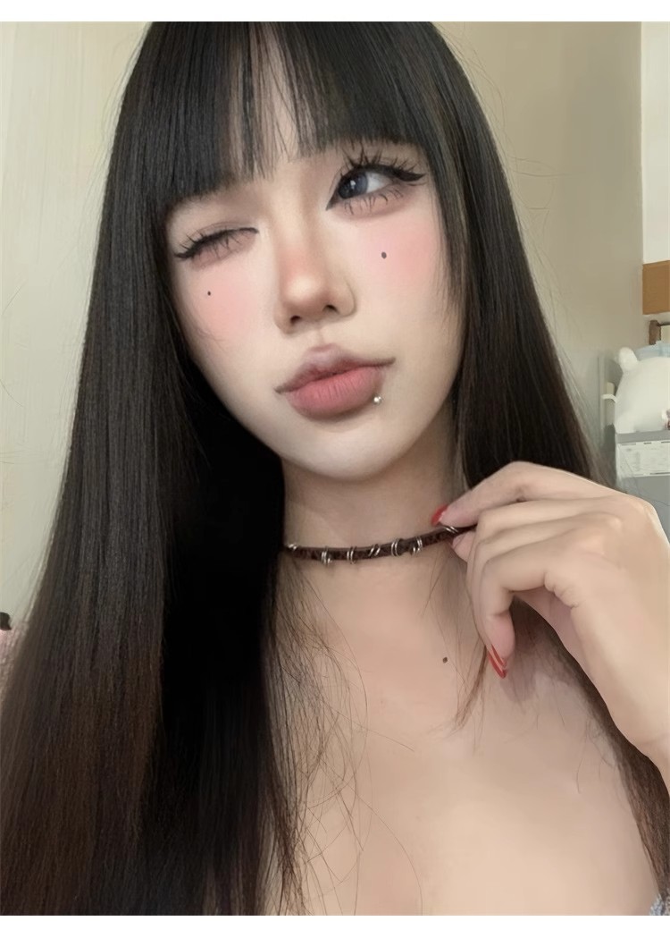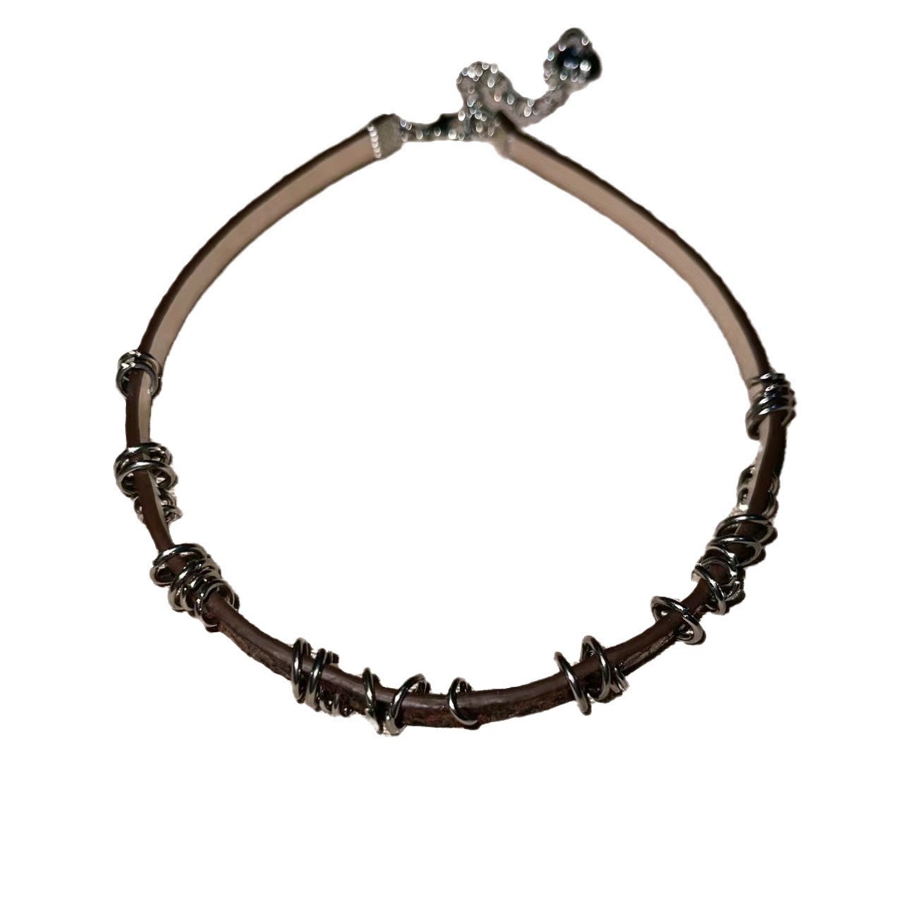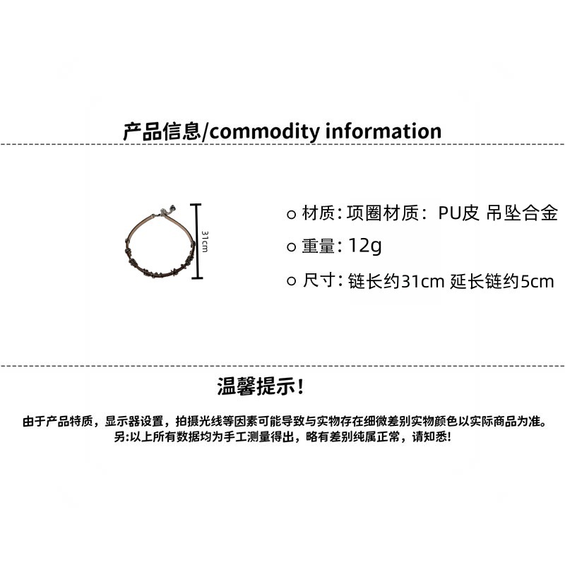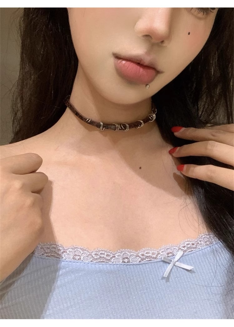 Y2K 밀레 니얼 스파이스 소녀 균열 가죽 초커 칼라 여성 복고풍 하위 문화 다크 브라운 원형 쇄골 체인 목걸이 체인스토어 가기