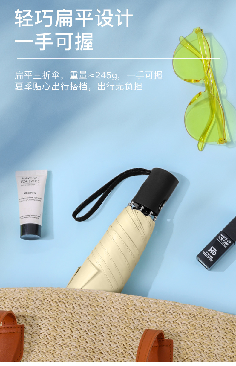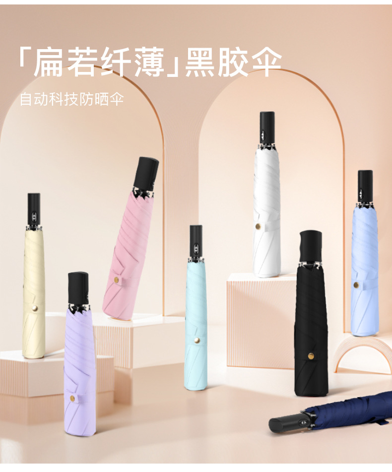 울트라 라이트 자동 플랫 폴딩 블랙 고무 썬 스크린 태양 우산 도매 맑은 우산 맞춤 광고 우산 휴대용 햇살 우산