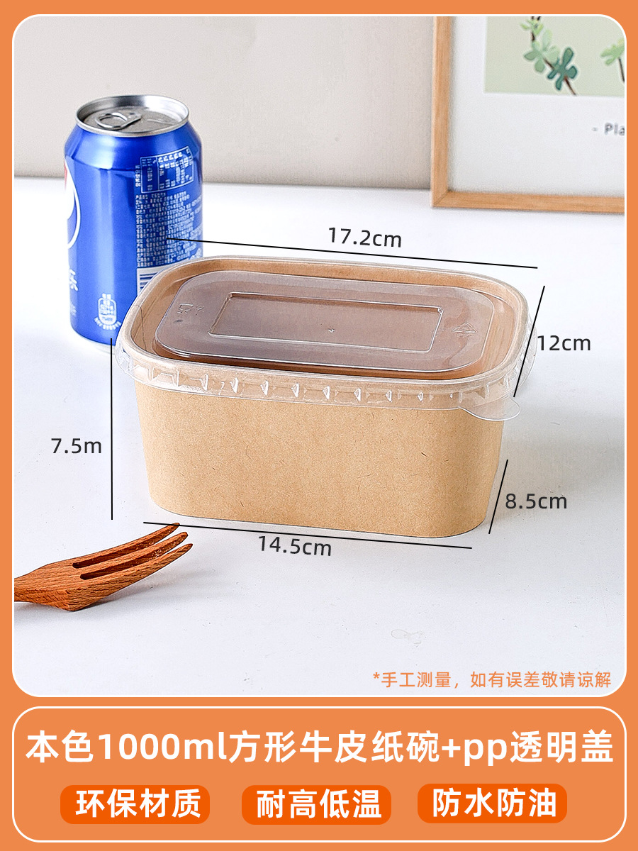 • 1000ml [내츄럴컬러 사각종이박스+PP투명뚜껑] * 50세트