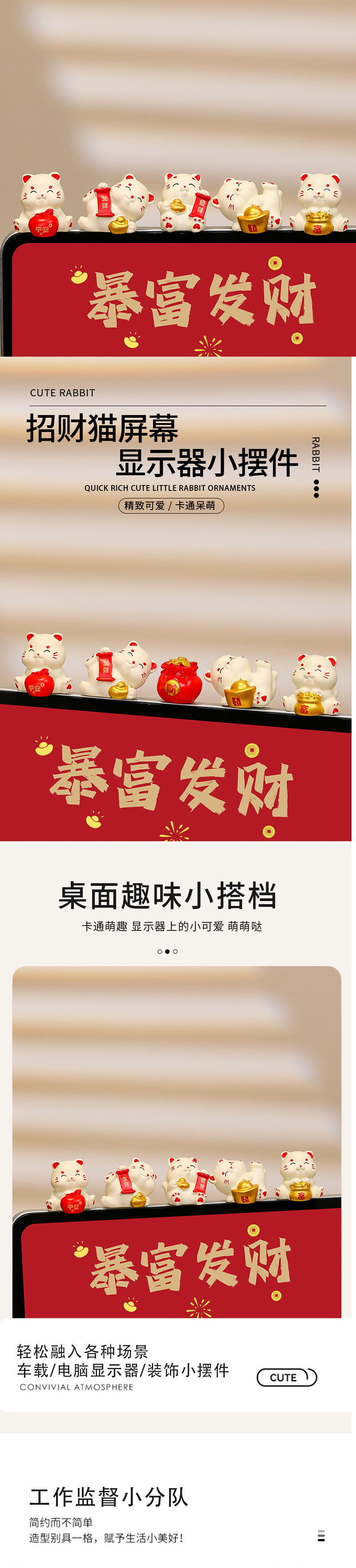 귀여운 럭키 고양이 컴퓨터 스크린 모니터 장식 사무실 워크 스테이션 데스크탑 장식 치유 부서 감압 소녀스토어 가기