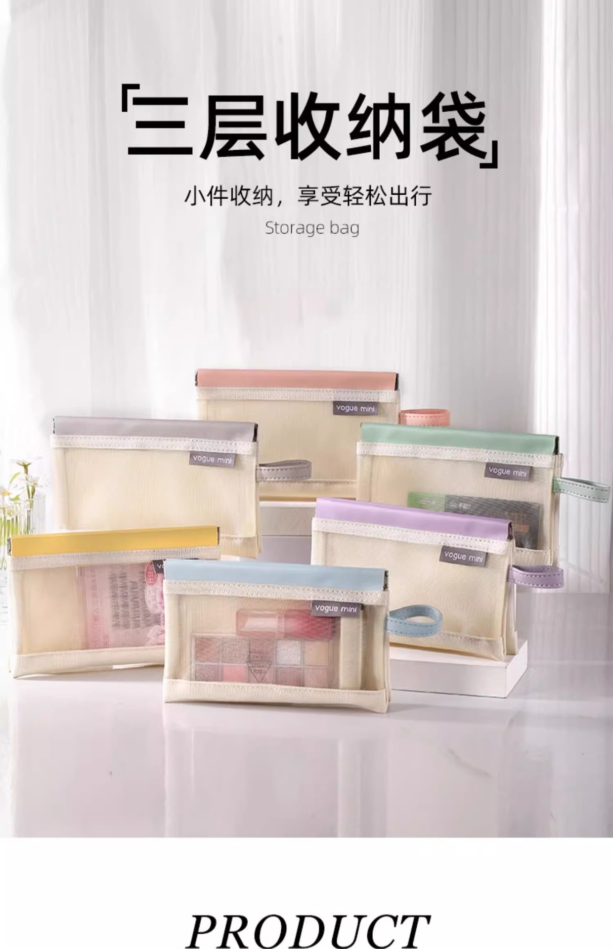 파편 3 층 저장 가방 메쉬 메이크업 가방 립스틱 변경 분리 된 저장 가방 간단한 휴대용 저장 가방스토어 가기