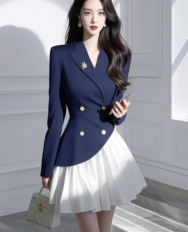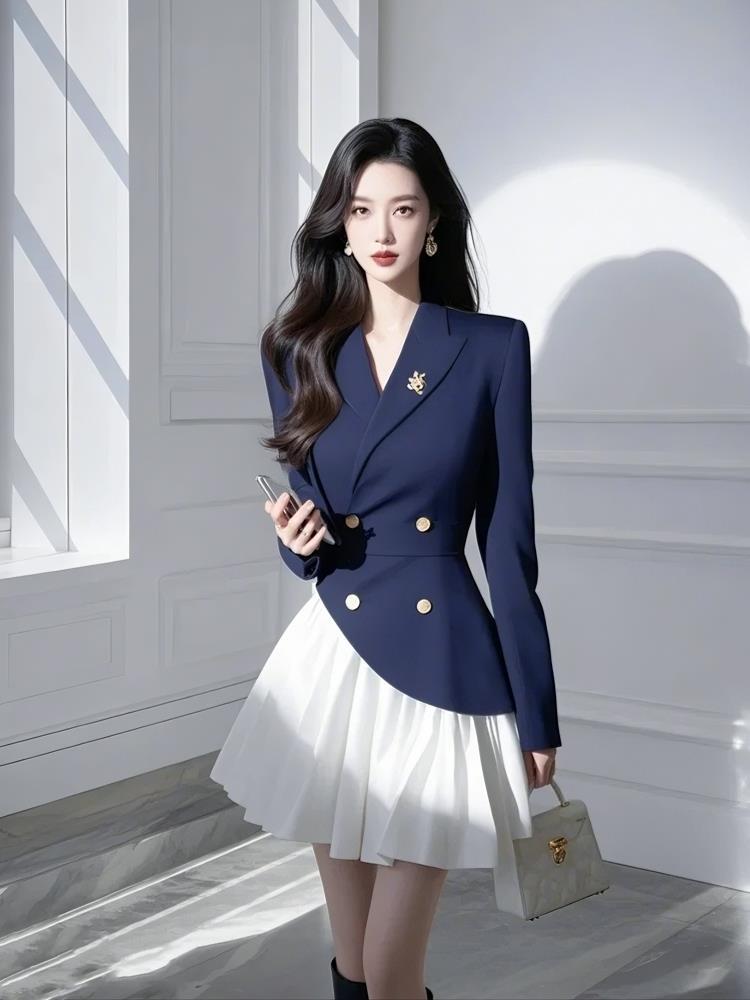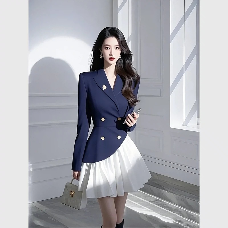 홀 홀 에어 스커트 여자 2025 봄 프랑스 하이 엔드 기질 작은 향수 화이트 블루 대비 컬러 세트 원피스스토어 가기