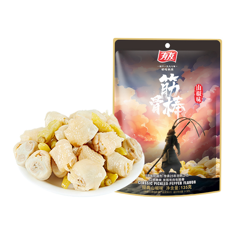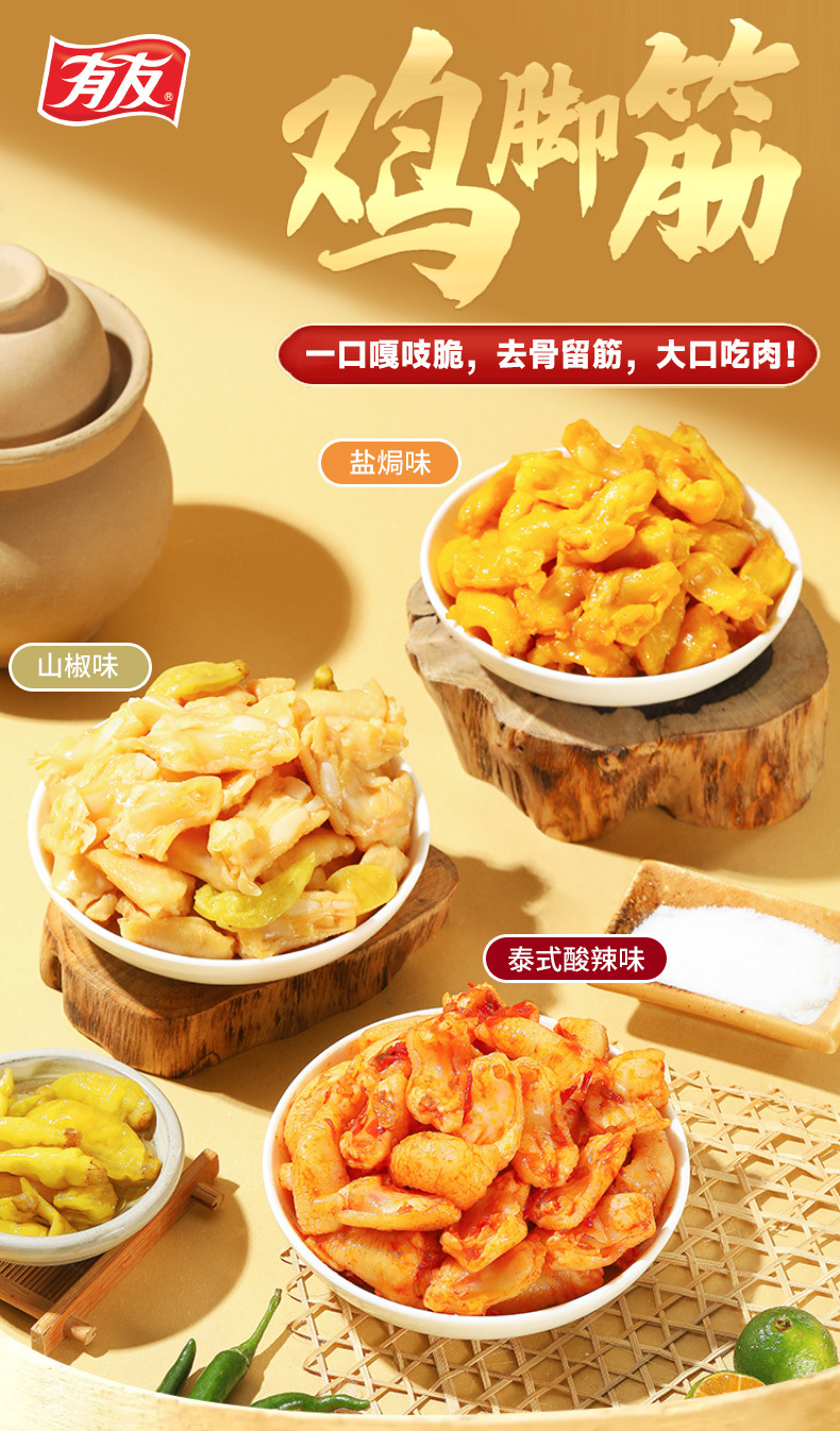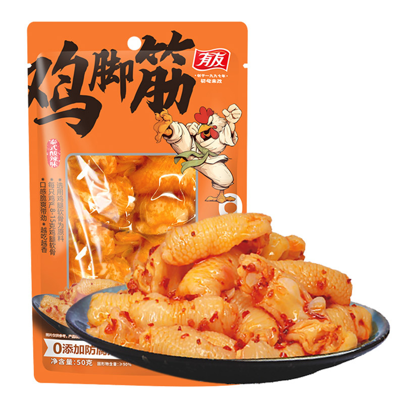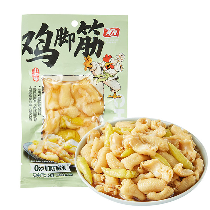 Youshan Pepper Chicken Foot Tendon 50g 절인 후추 소금 구운 태국 사워 및 뜨거운 맛 치킨 발 텐돈 음식 간식스토어 가기