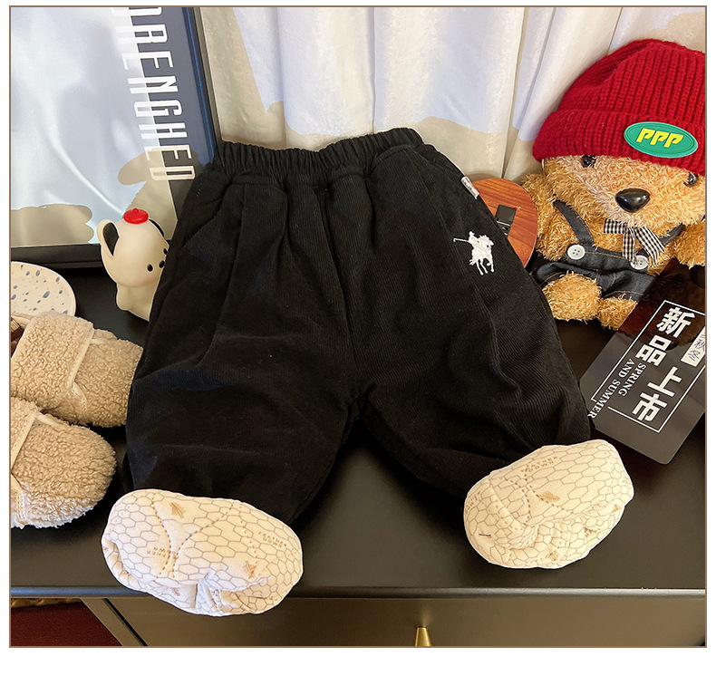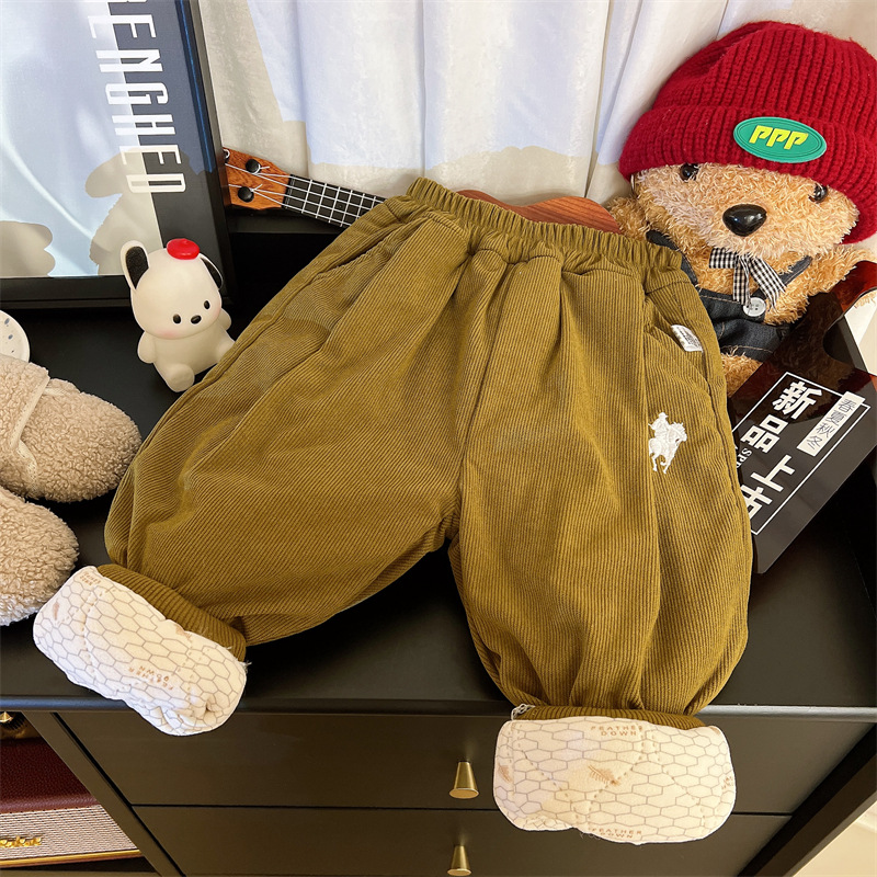가을 겨울 신상 아동용 두꺼운 온도변화 캐주얼 바지, 유아용 스웨트팬츠, 면바지, 만화 자수 바지, 한국 스타일스토어 가기