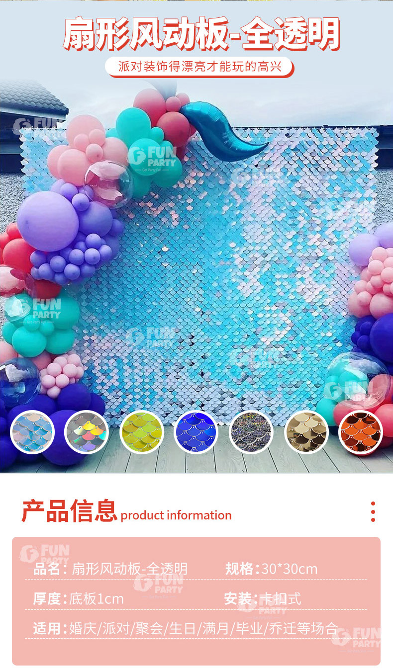 팬 모양의 바람 보드 꿈 반짝이 벽 스팽글 배경 바다 테마 파티 장식 어린이 생일 장면 레이아웃스토어 가기