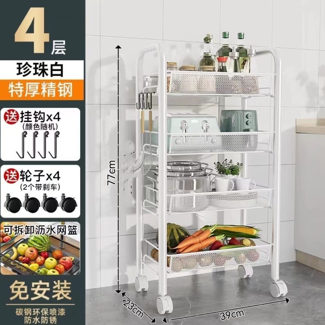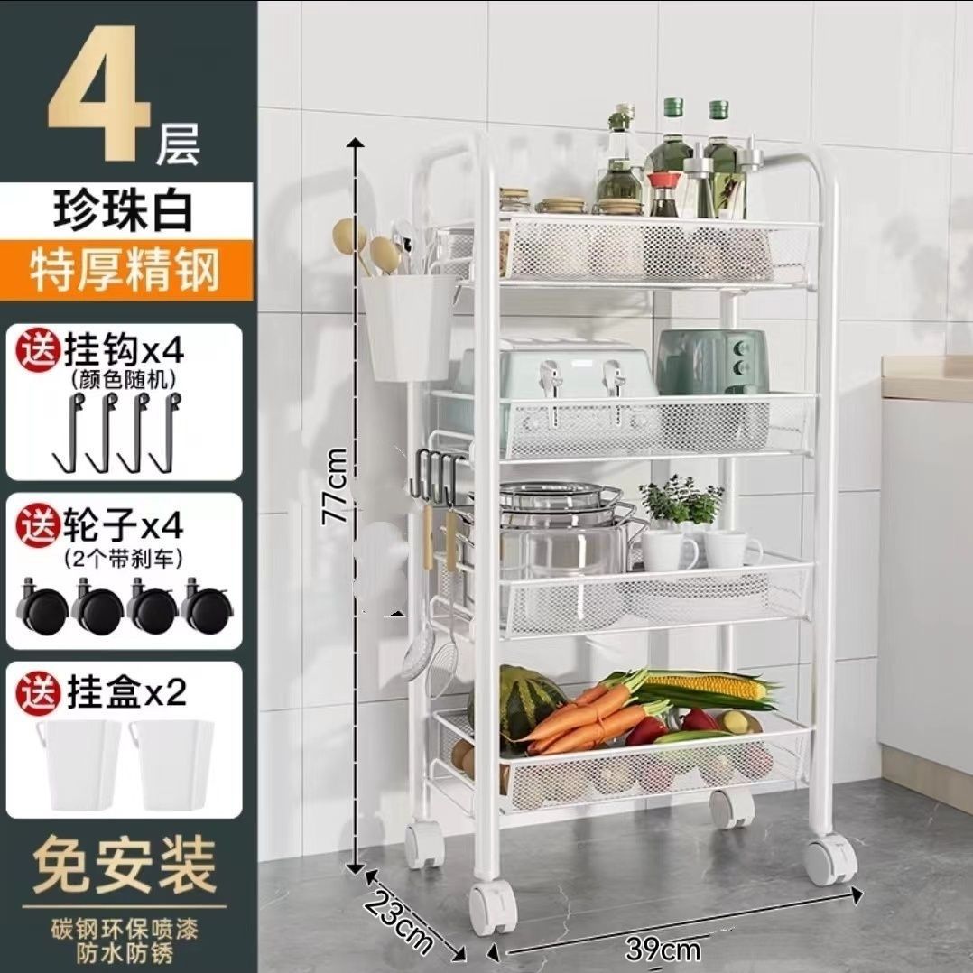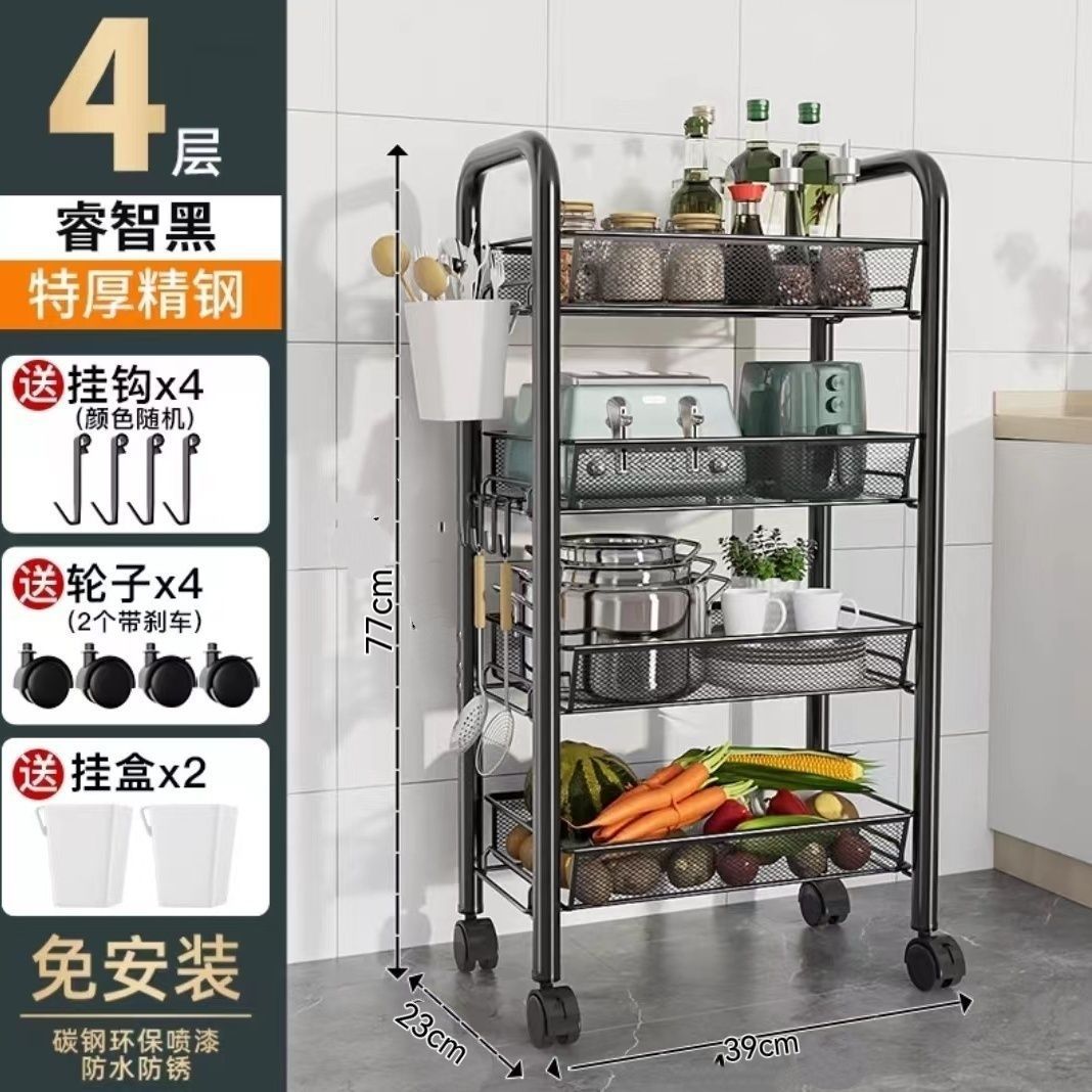 주방 보관 선반 바닥 다층 가정용 전자 레인지 선반 야채 저장 랙 오븐 랙 오븐 저장 랙 휠