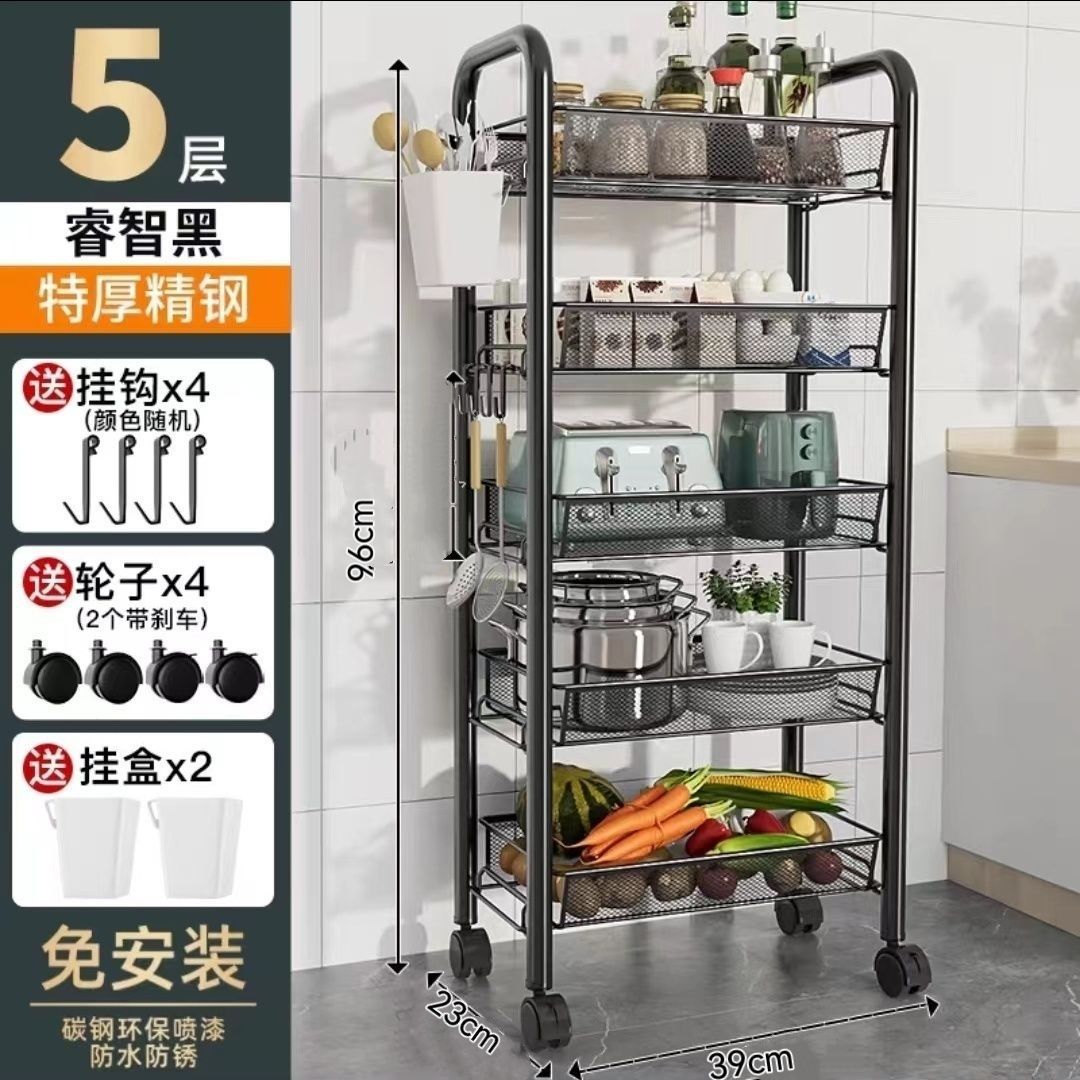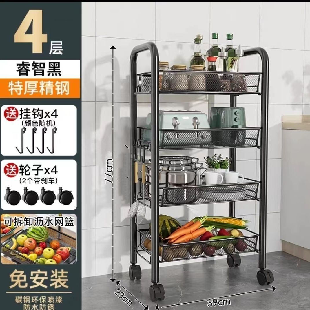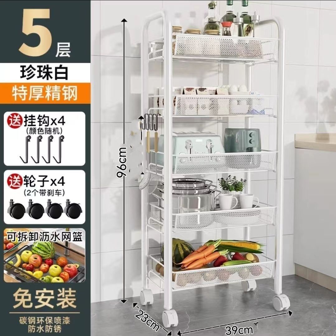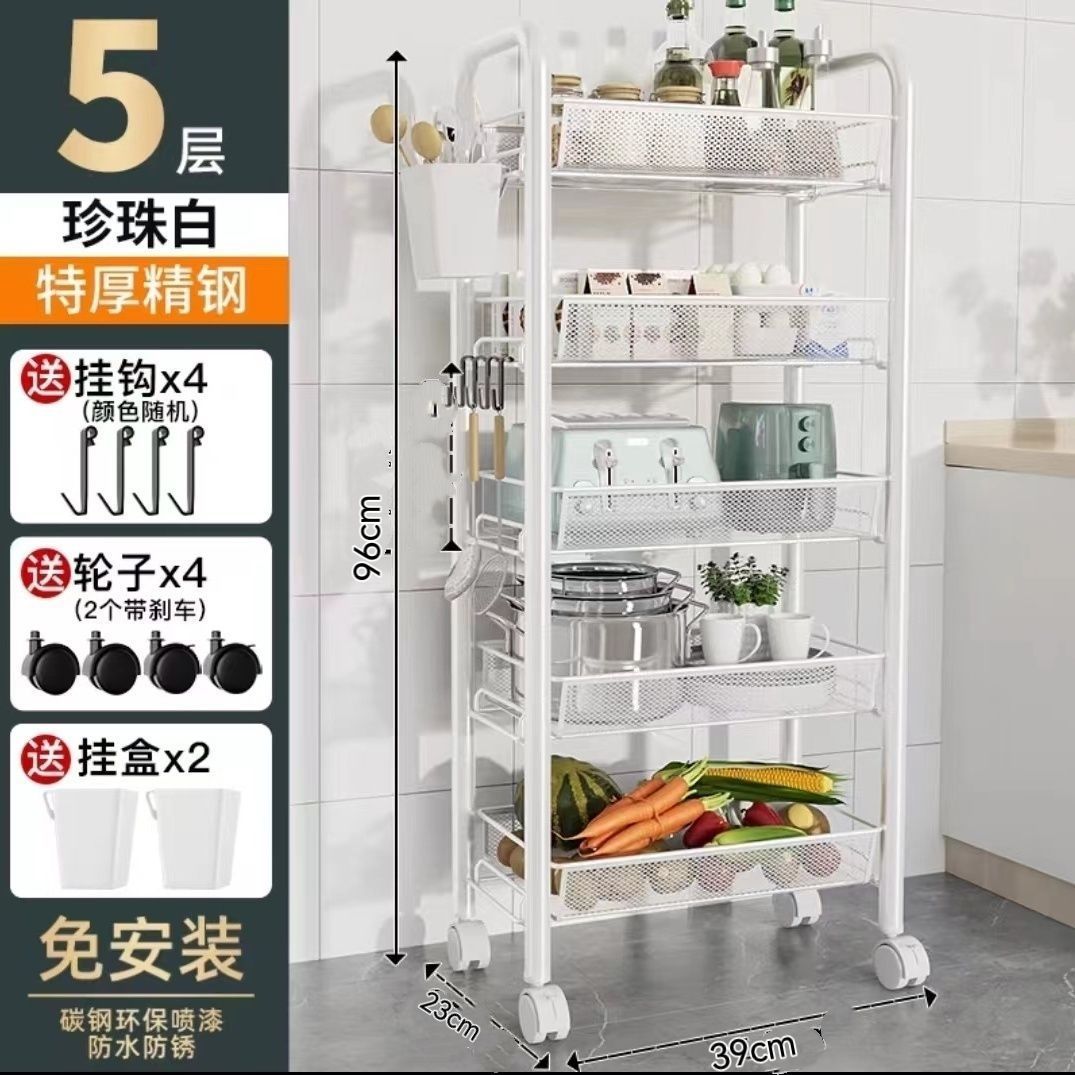 주방 보관 선반 바닥 다층 가정용 전자 레인지 선반 야채 저장 랙 오븐 랙 오븐 저장 랙 휠