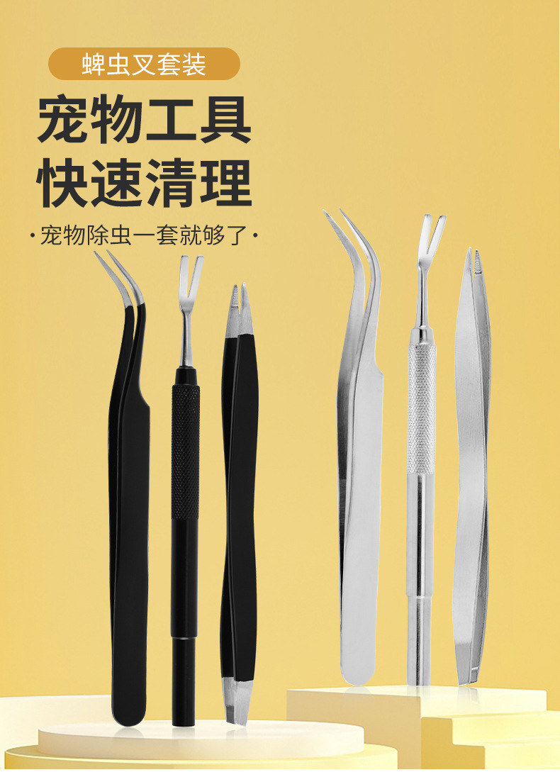 스테인레스 스틸 틱 클립 애완 동물 개 이가 클립 클립 3 조각 세트 고양이 벼룩 핀셋 버그 클립 도구 세트스토어 가기