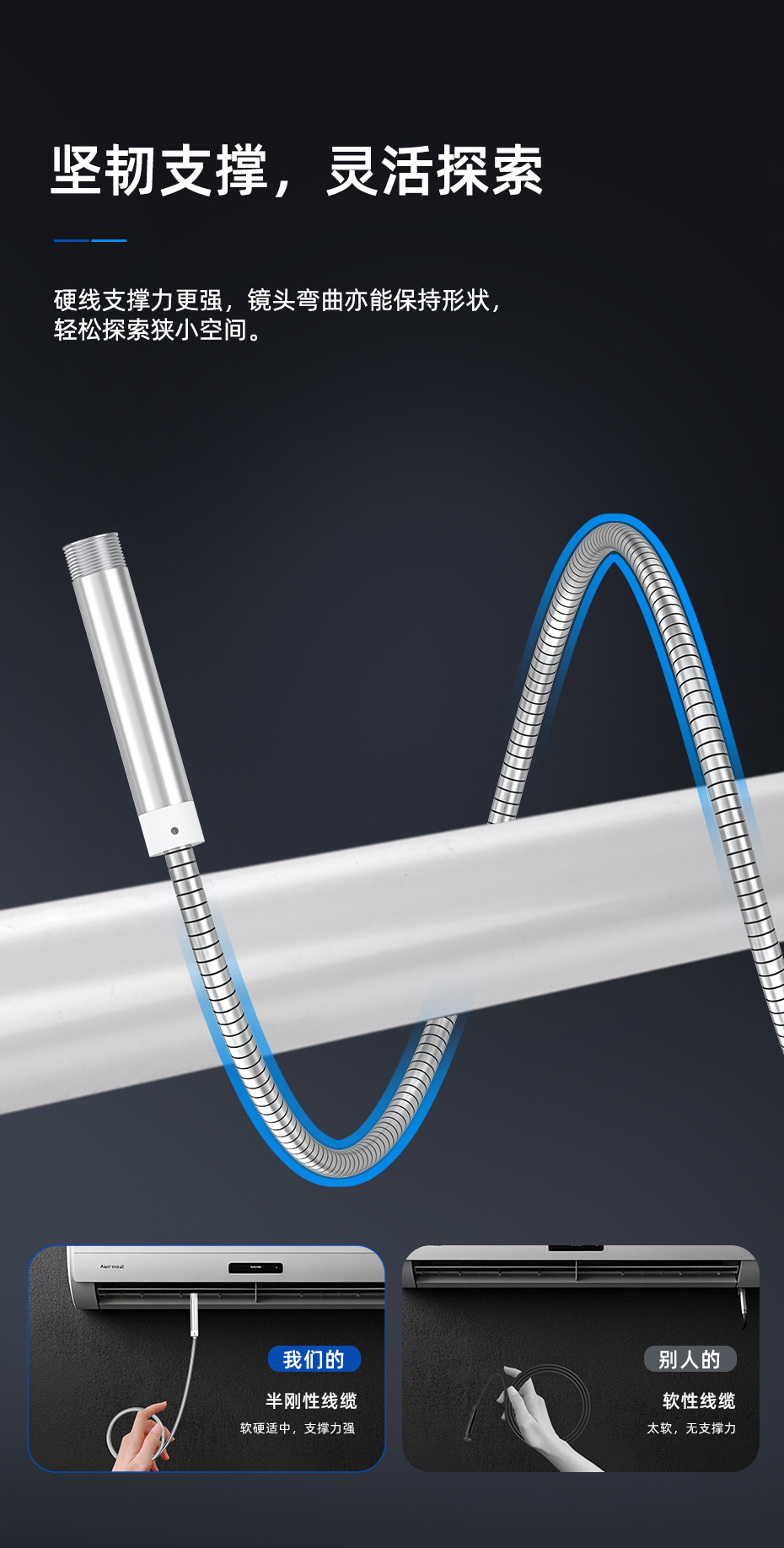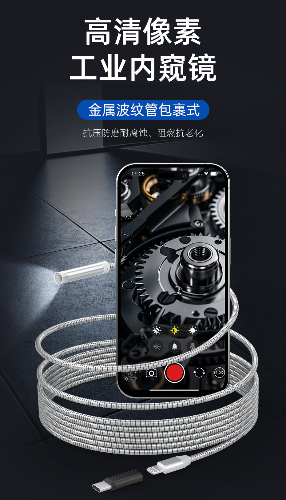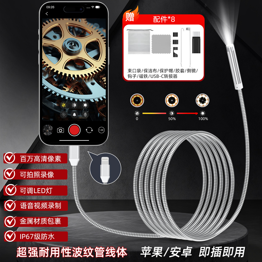새로운 2 대 1 벨 로우 소재 산업 내시경 지원 애플 안드로이드 컴퓨터 파이프 수리 카메라스토어 가기