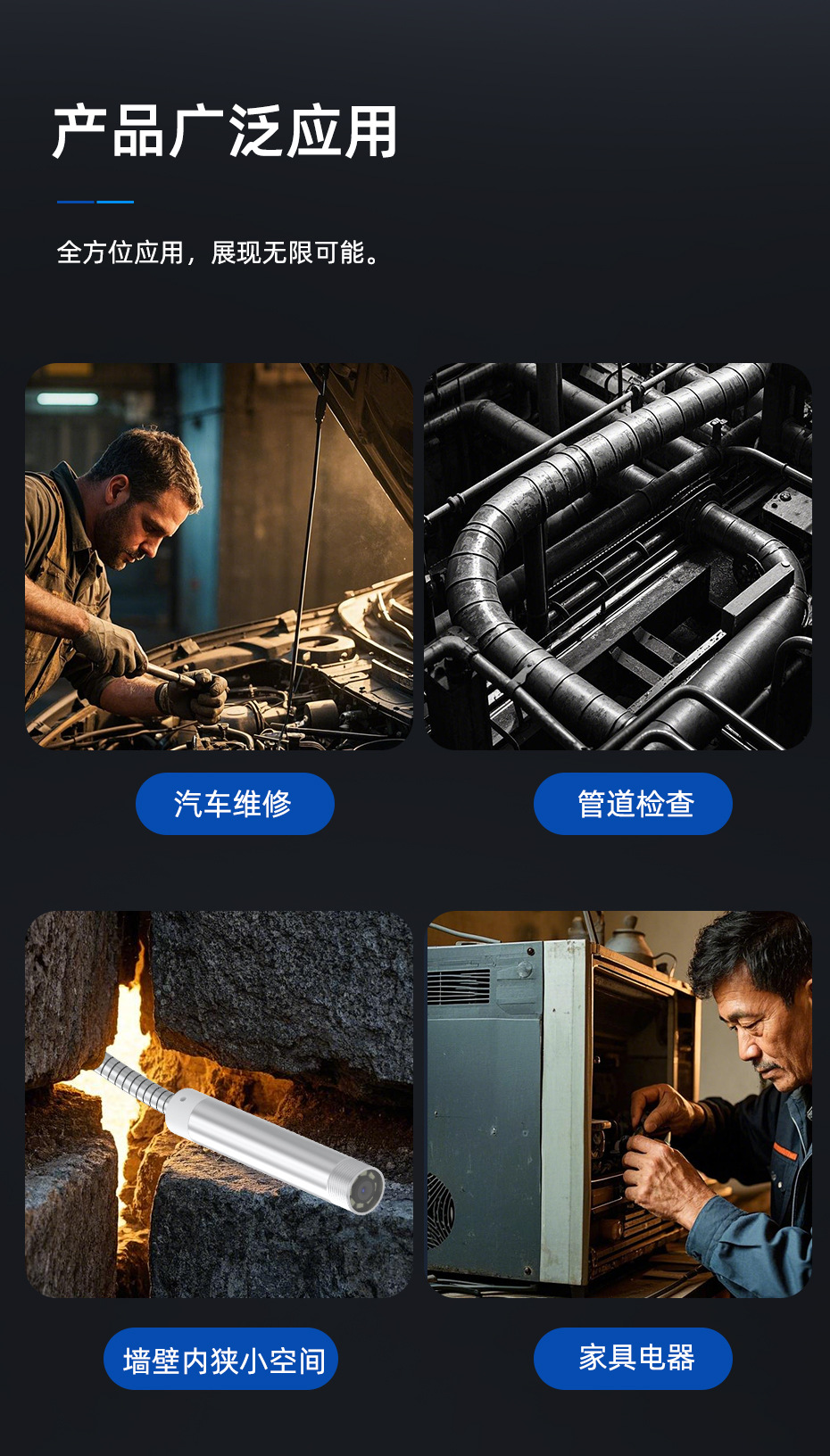 새로운 2 대 1 벨 로우 소재 산업 내시경 지원 애플 안드로이드 컴퓨터 파이프 수리 카메라