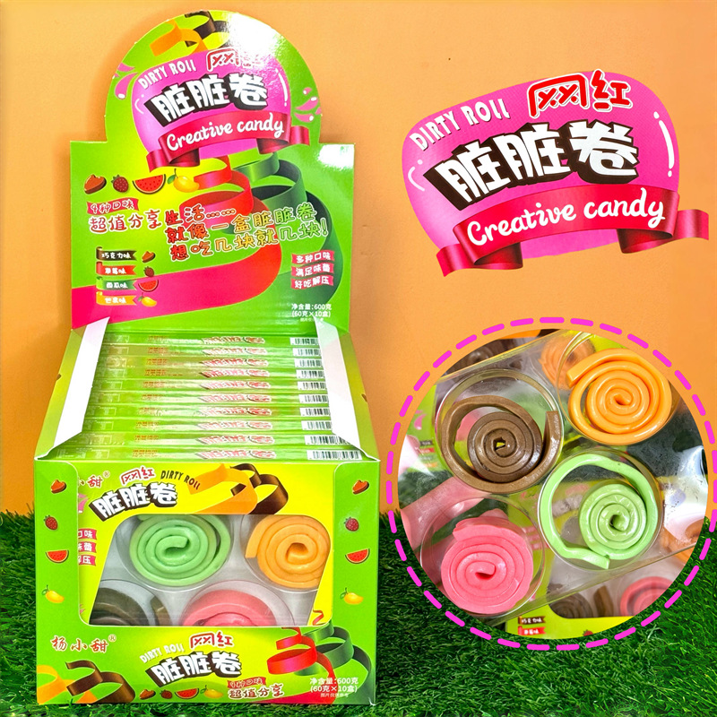 공장 도매 그물 레드 더러운 롤 혼합 과일 젤리 사탕 학교 사탕 놀이 어린이 스낵 사업 슈퍼 5 위안 장난감 사탕스토어 가기