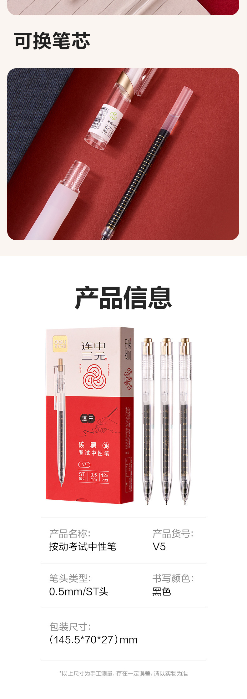 델리 V5 심지어 3 위안 빠른 건조 프레스 테스트 젤 펜 ST 펜 0.5mm 카본 블랙 브러시 테스트 펜