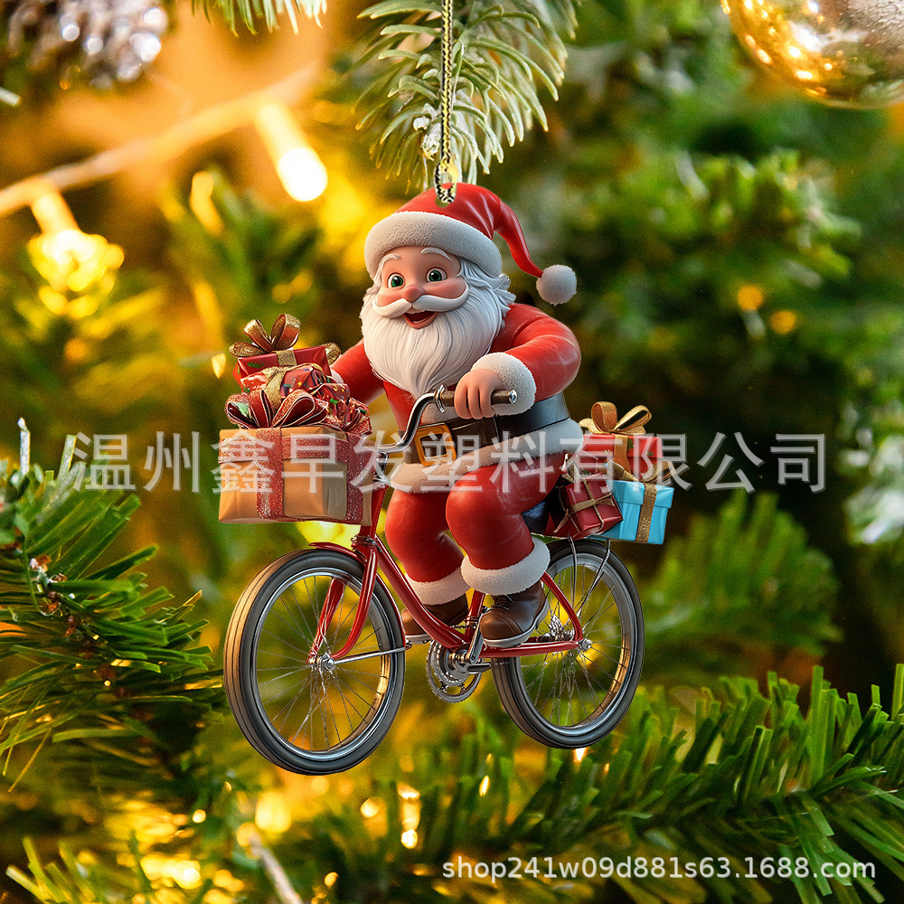 국경 간 대외 무역 온라인 빨간 폭발 산타 클로스 자전거 자동차 인테리어 아크릴 펜던트 자동차 열쇠 매달려스토어 가기