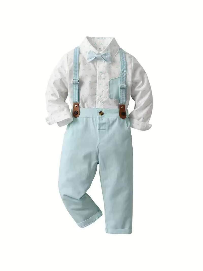 국경 간 소년 신사 원피스 세트 봄과 가을 새 어린이 긴 소매 셔츠 스트래퍼 파티 세트 아동복