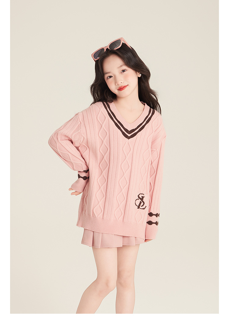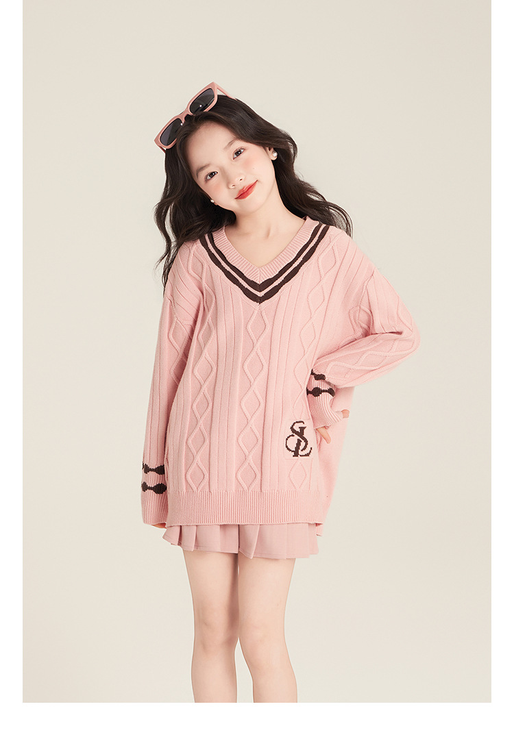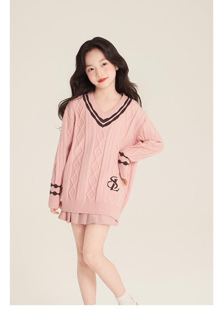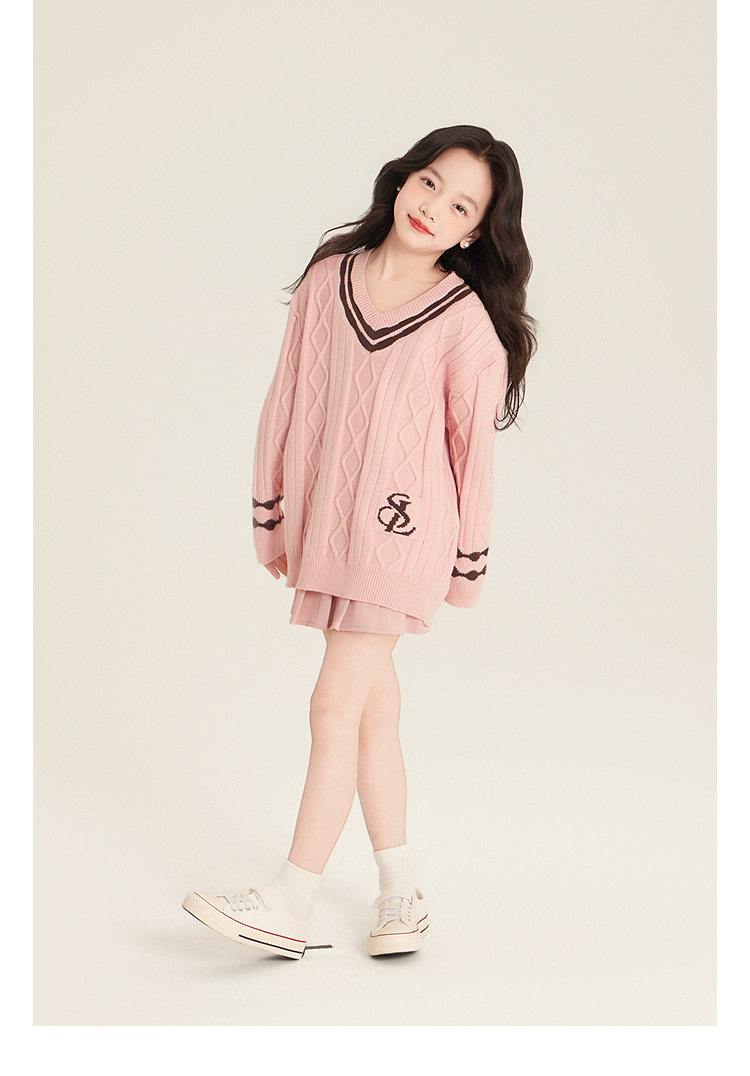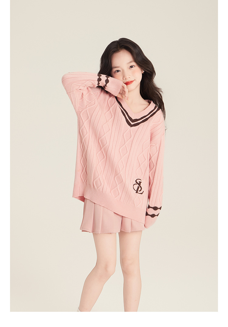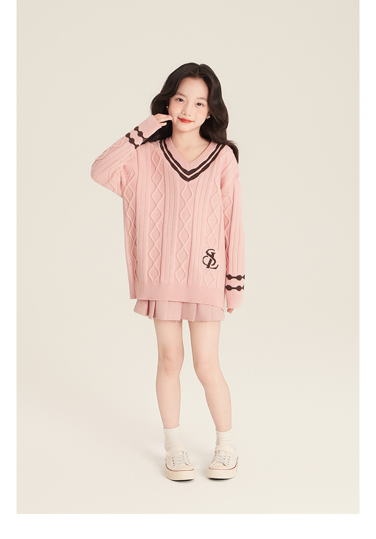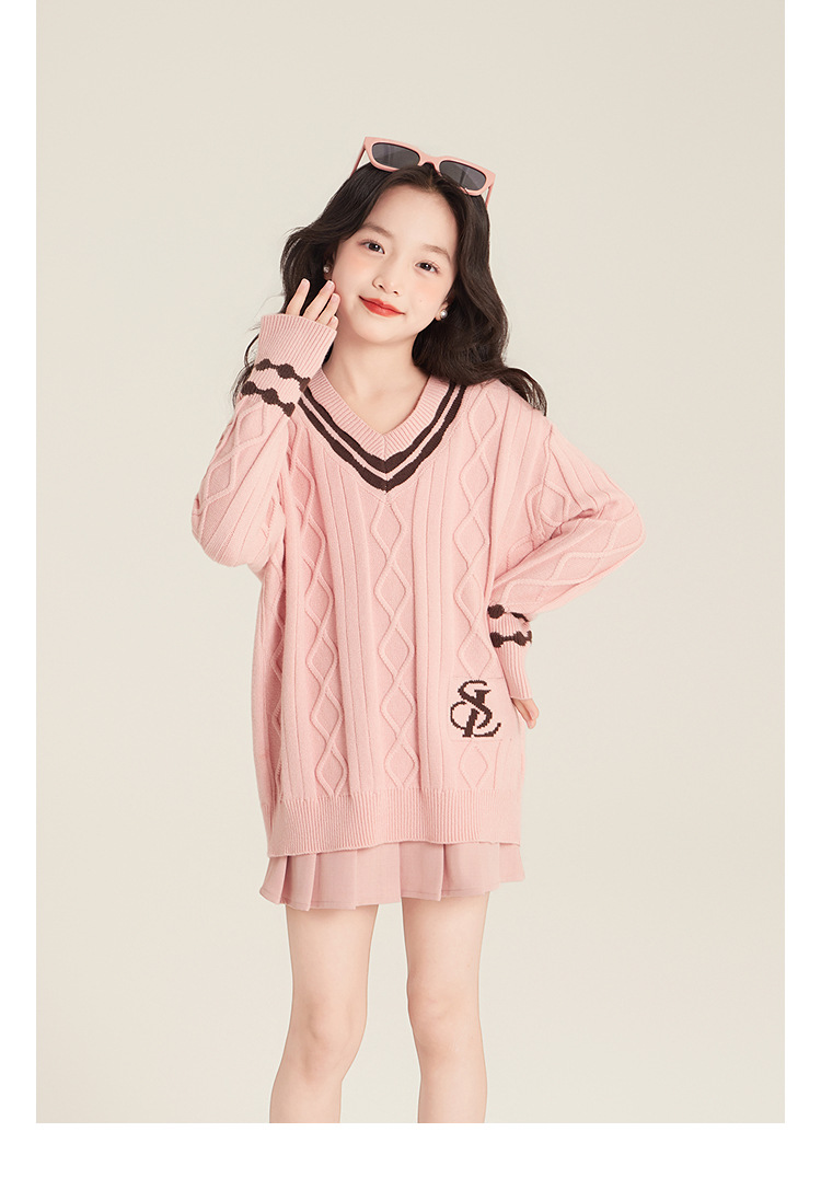 Amybaby Girl's Top Spring 2025 New Sweet V 넥 디자인 올 매치 솔리드 컬러 트위스트 스웨터스토어 가기
