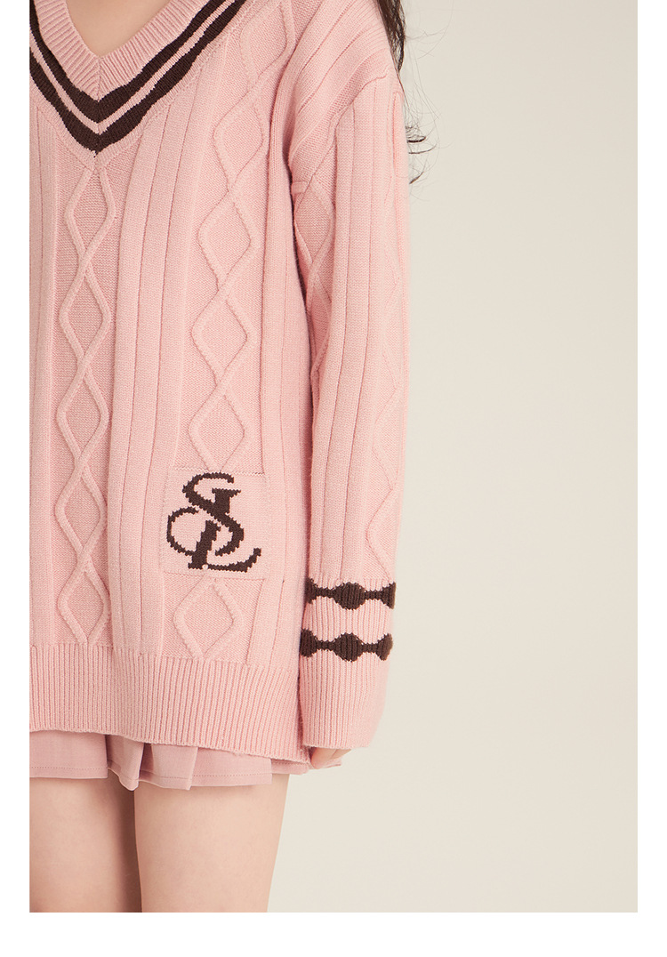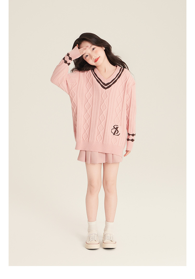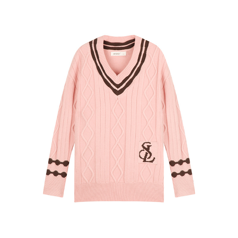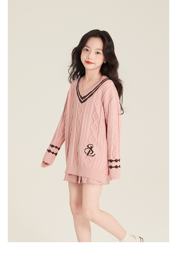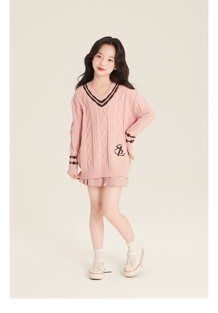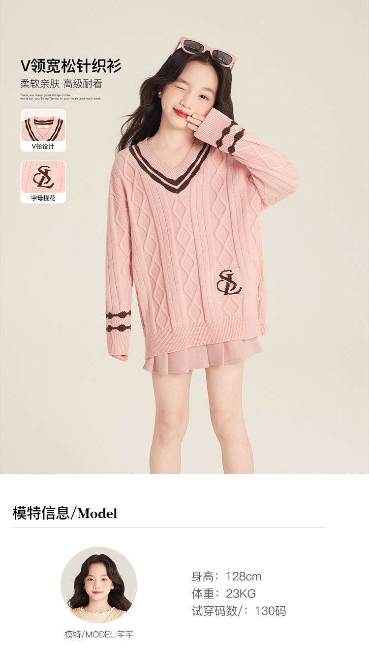 Amybaby Girl's Top Spring 2025 New Sweet V 넥 디자인 올 매치 솔리드 컬러 트위스트 스웨터스토어 가기