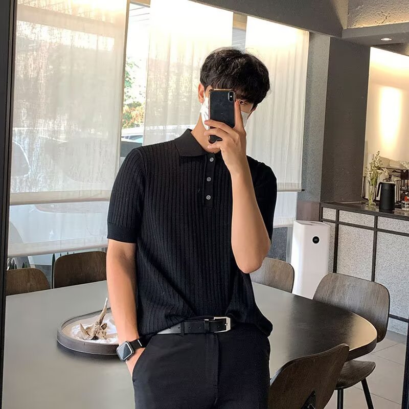 2025 봄과 여름 한국 폴로 셔츠 옷깃 스웨터 남자 긴 소매 홍콩 스타일 솔리드 컬러 내면베이스 셔츠 탑