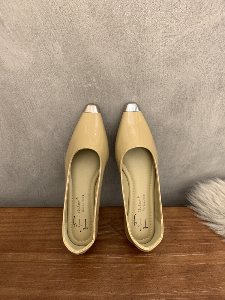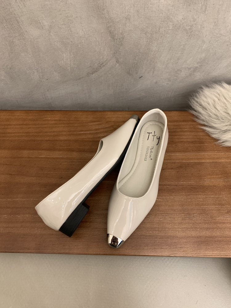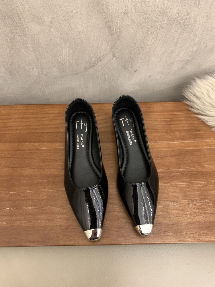 검은 Chunky Heel Shallow Mouth 싱글 레이어 신발 여성의 2025 봄과 가을 새 광장 헤드 저발 전문 통근 하이힐스토어 가기