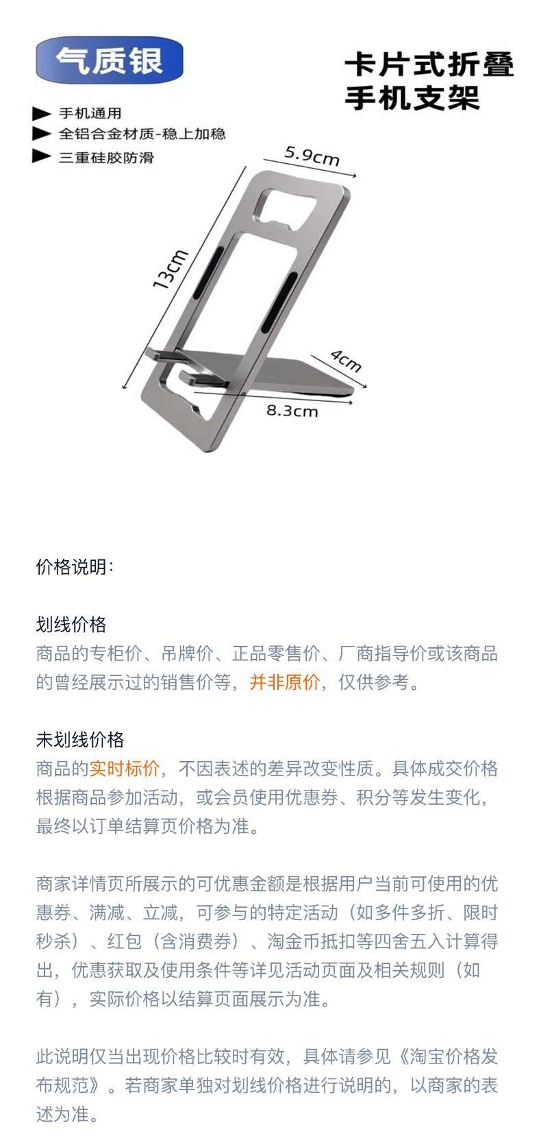 카드 형 휴대 전화 홀더 데스크탑 알루미늄 합금 접이식 휴대용 다기능 선반 평면 유니버설 미니스토어 가기