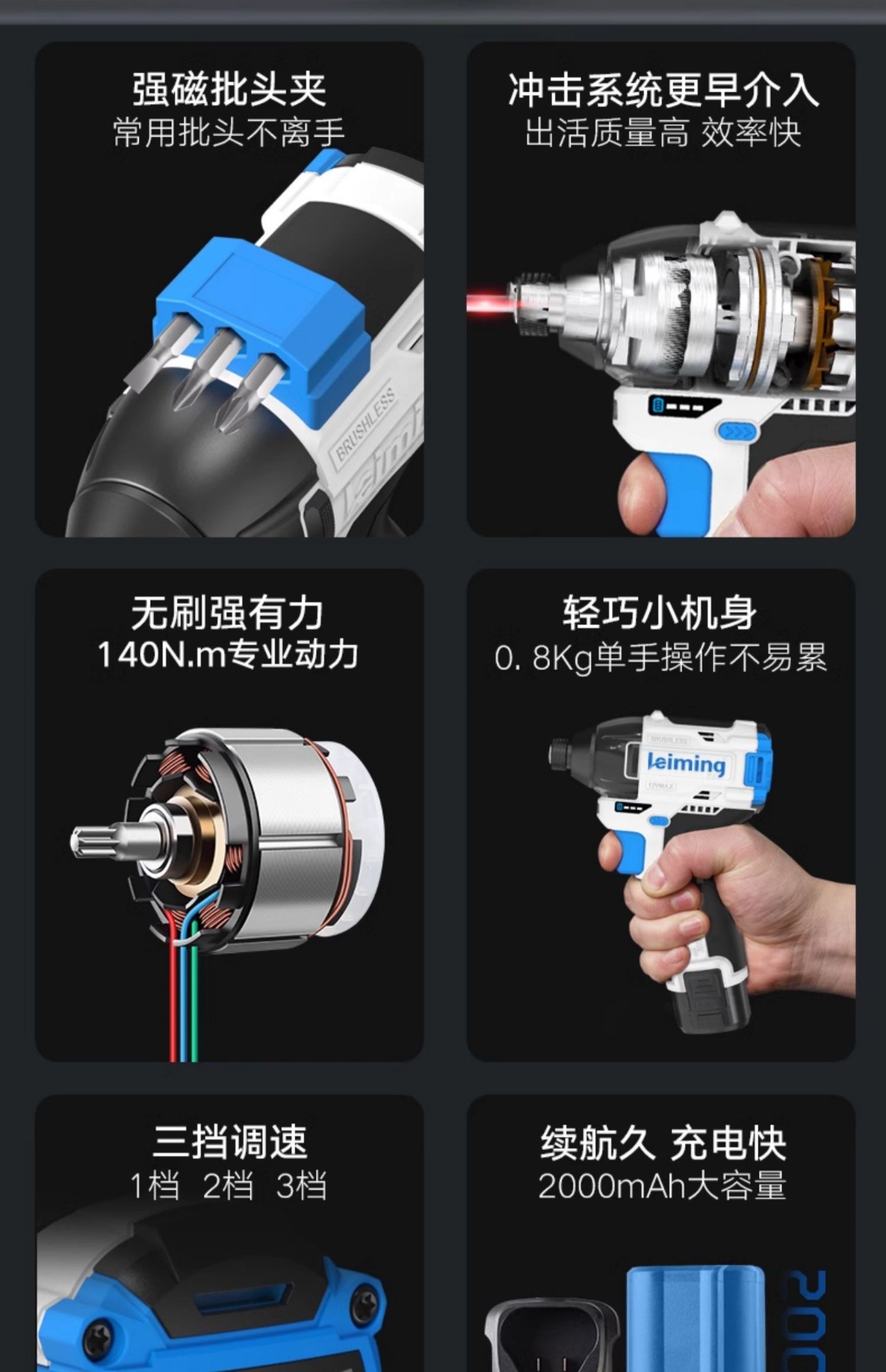 Lei Ming 140 소 브러시리스 충격 드라이버 LS132 대형 토크 전문 전기 배치 전기 드라이버 충전식스토어 가기