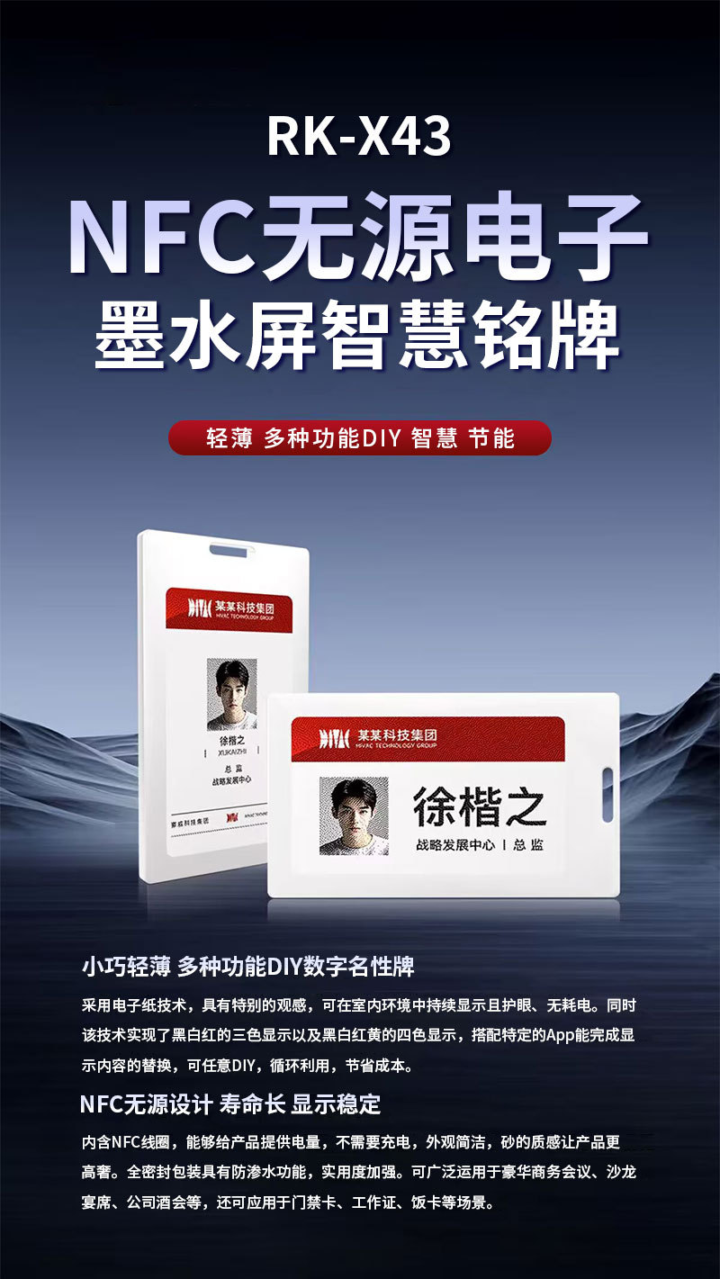 새로운 스마트 AI 잉크 화면 블루투스 스마트 이름 카드 작업 카드 NFC 수동 전자 잉크 화면 명판