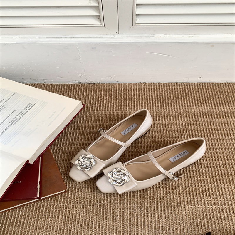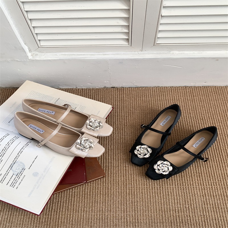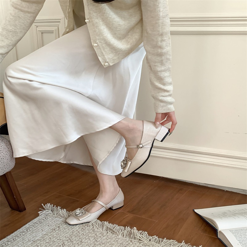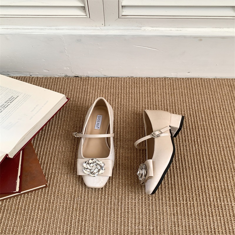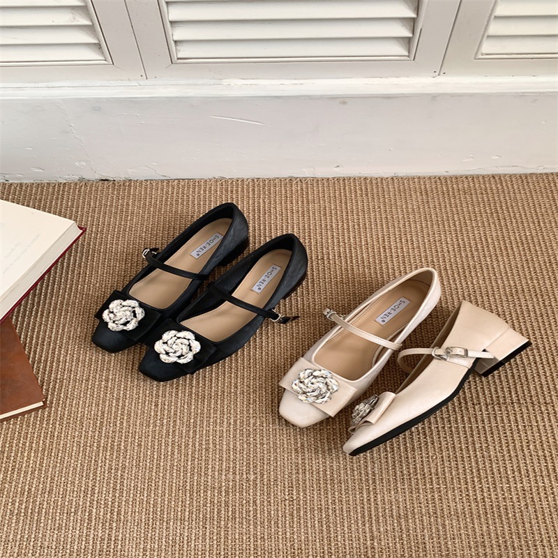 요정 스타일 꽃 라인 스톤 얕은 입 기질 싱글 신발 2025 봄 새 광장 머리 두꺼운 굽 이브닝 슈즈와 한 캐릭터스토어 가기