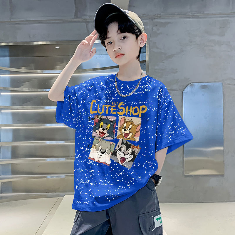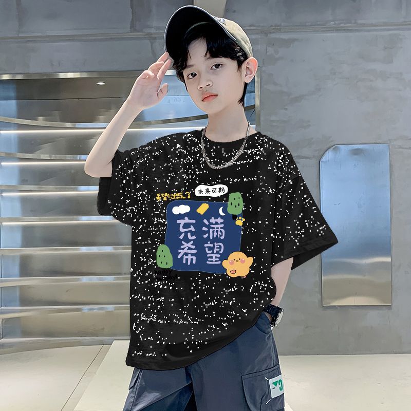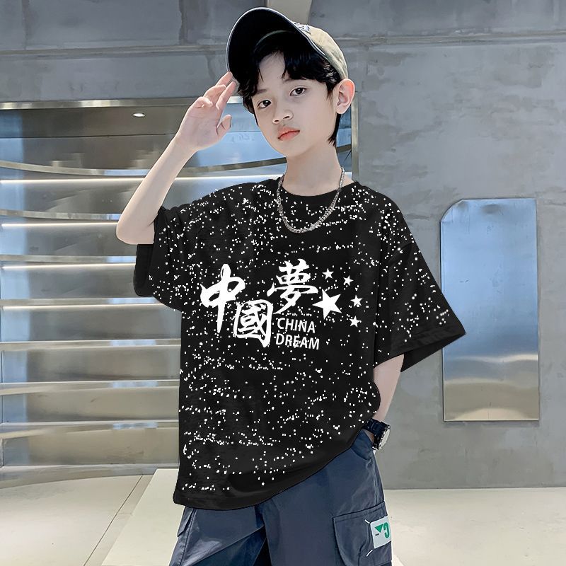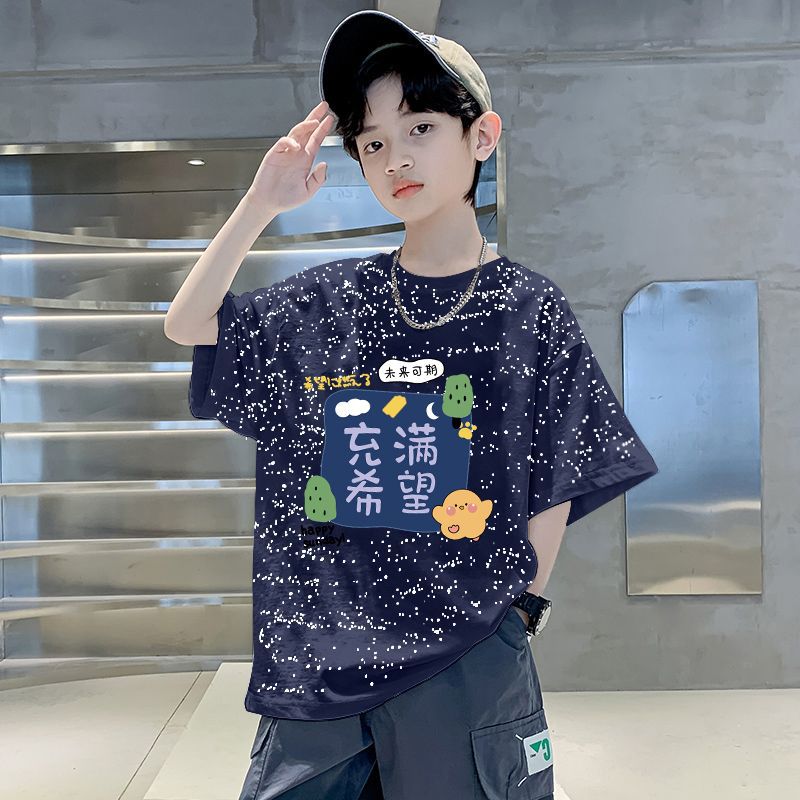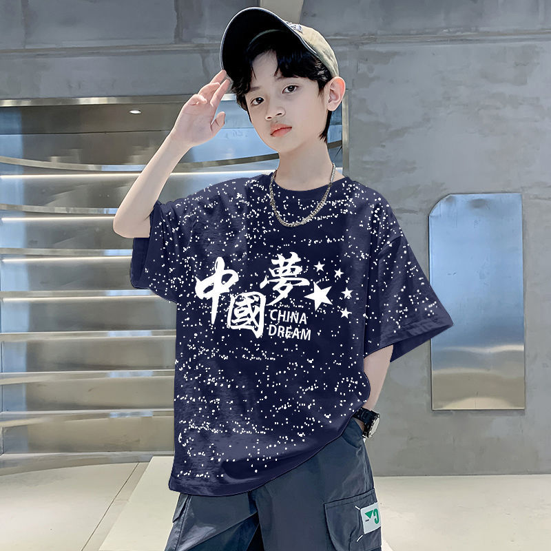 남자들의 여름 티셔츠 면 중대형 어린이 반팔 손수건 2025 새로운 도착 여름 반소매 유행 게슈타포 탑스토어 가기