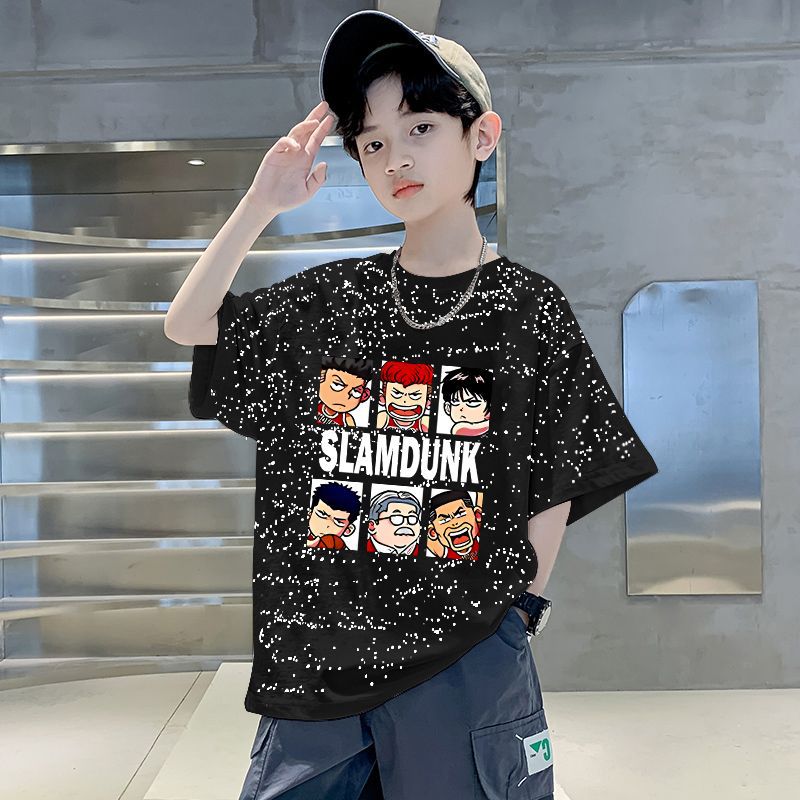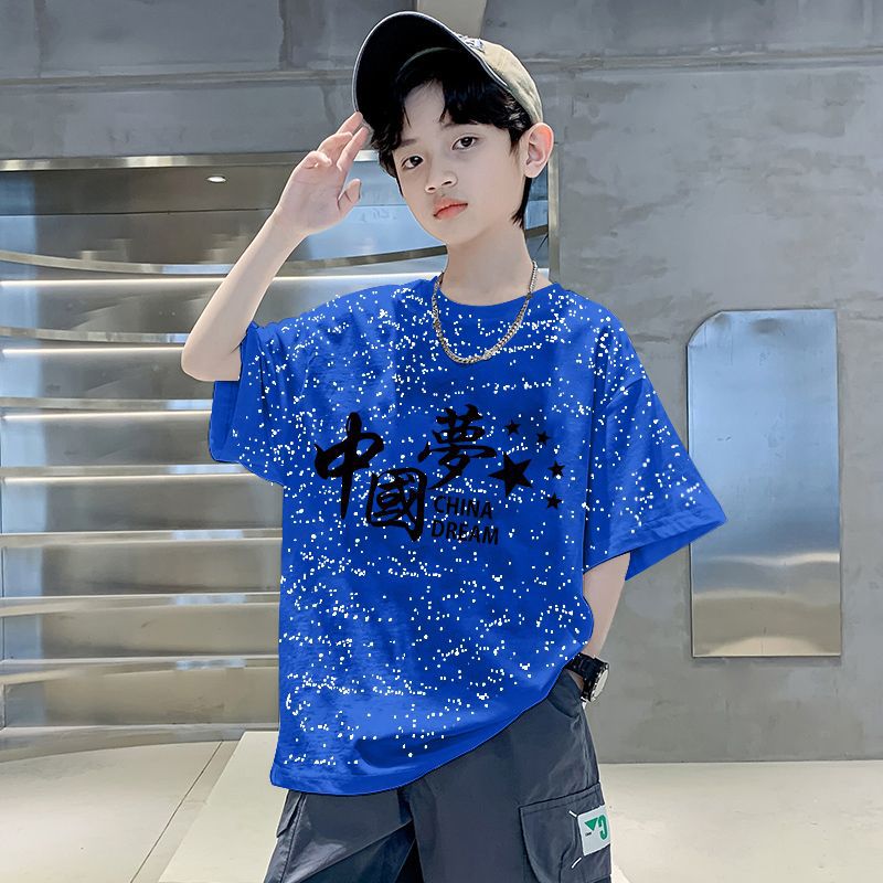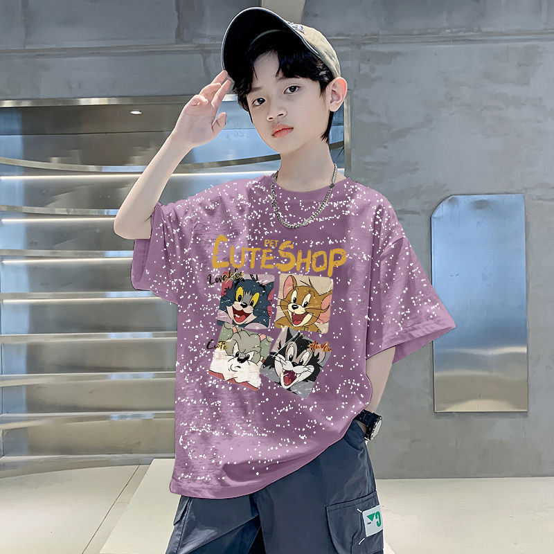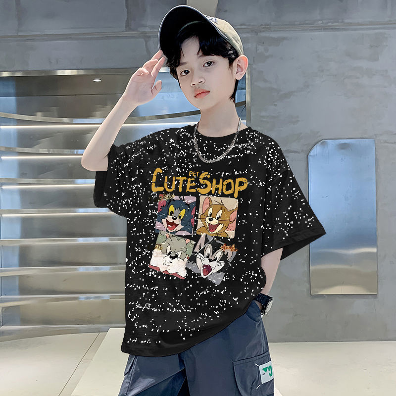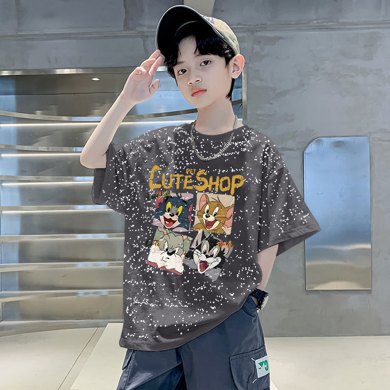 남자들의 여름 티셔츠 면 중대형 어린이 반팔 손수건 2025 새로운 도착 여름 반소매 유행 게슈타포 탑스토어 가기